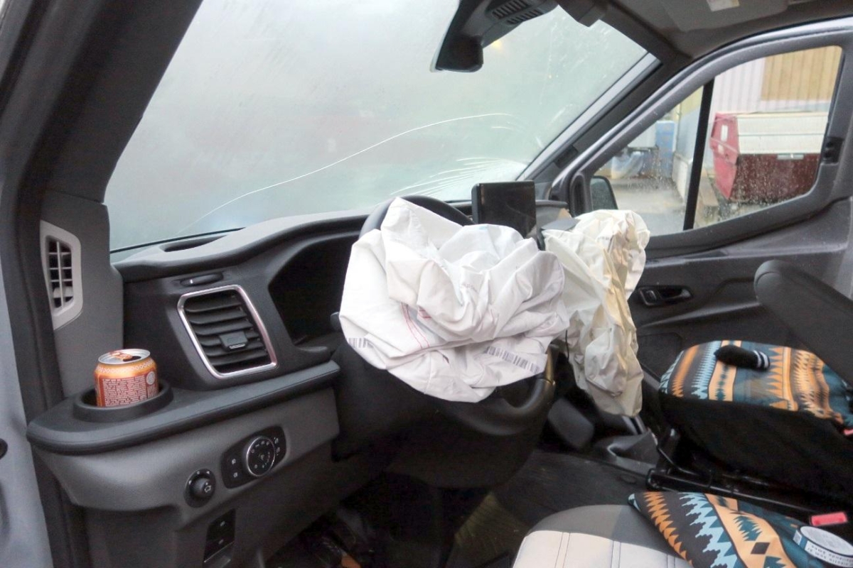 Fahrer- und Beifahrerairbag ausgelöst. Gurtstraffer ausgelöst