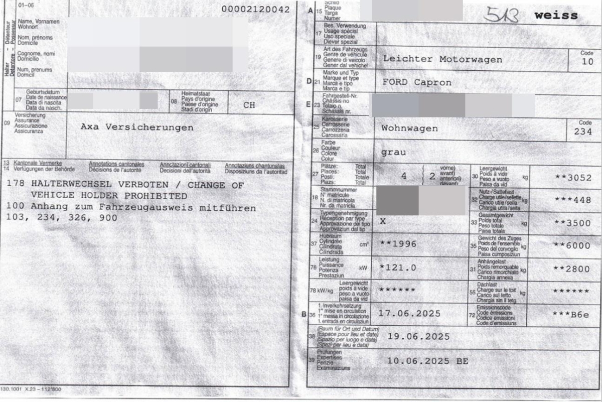 Fahrzeugausweis Vorhanden