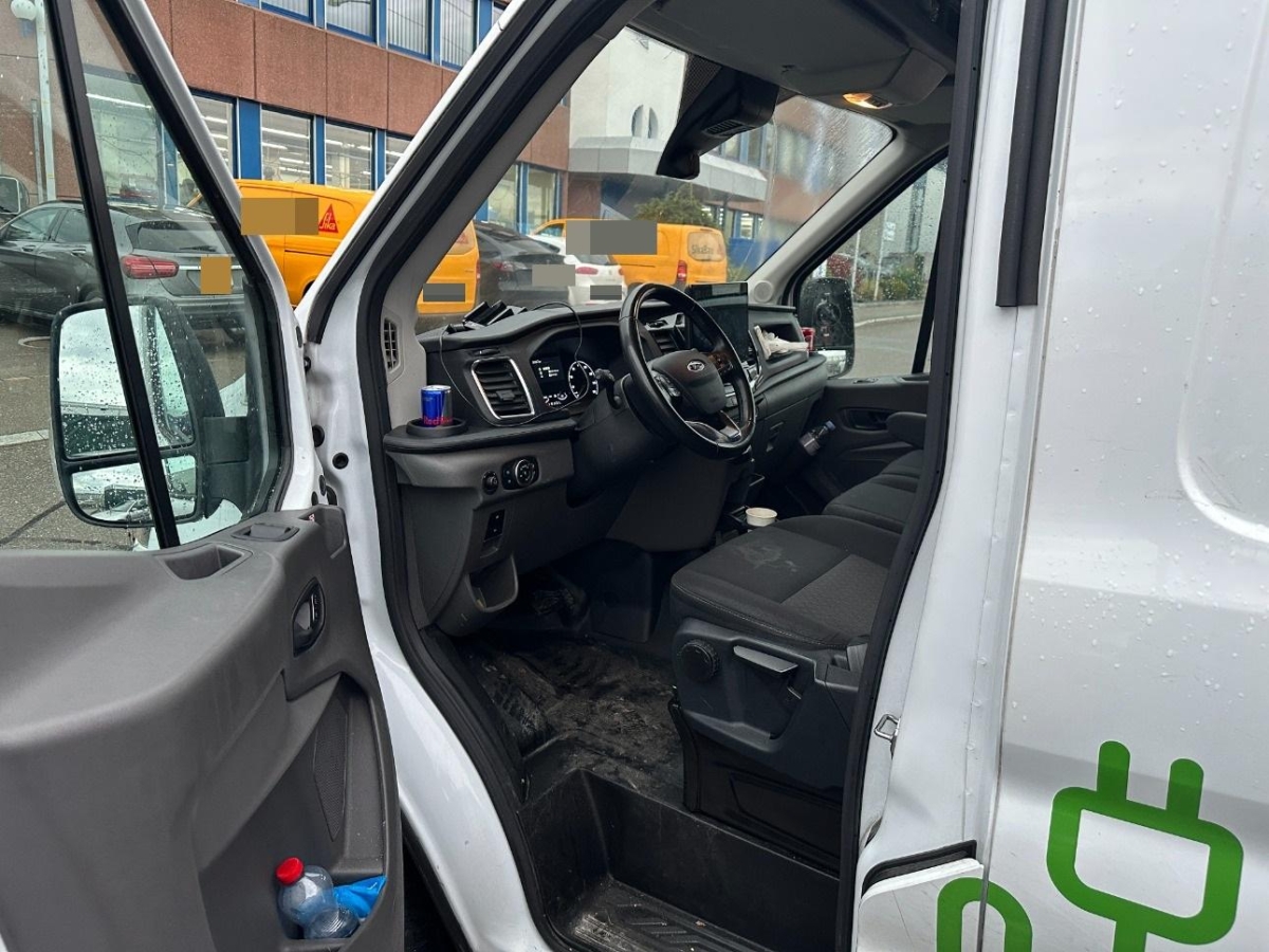 Garantie: Ford Protect Garantie 3 Jahre oder 100000km, Klima: Umluftschaltung/Heizung vorn, Assist: Sicherheits-Bremsassistent, Aussenspiegel mit integrierten Blinkleuchten, Trennwand (Kunststoff) in Höhe der B-Säule, Lackierung: Uni-Lackierung, Türen: Schiebetür rechts, Lenkrad: Kunstlederlenkrad, Überkopfablagefach, vorn, Assist: Geschwindigkeitsbegrenzer 130 km/h, Seitenwandverkleidung hoch, Batterielaufzeit, Programmierung der Batterielaufzeit auf 10 min, Handschuhfach mit Deckel, abschliessbar, 1 Batterie, Fach über Fahrerhaus – offen, Innenraumbeleuchtung vorne mit 2 Leselampen, Zentralverriegelung mit Fernbedienung (2 Schlüssel, davon einer mit Fernbedienung), Garantie: 2 Jahre Werksgarantie (unbeschränkte Kilometerleistung), Räder: Stahlräder 6.5×16, Media: Ford Audiosystem mit 12” Multifunktionsdisplay und SYNC4 – Connected Radio (UKW/MW) – Digitaler Radioempfang DAB/DAB+ (Digital Audio Broadcasting) – FordPass Connect* (siehe Beschreibung oben) – Audio-Fernbedienung am Lenkrad – Unterstützung von Android Auto und Apple CarPlay – Ford SYNC 4 mit AppLink und Touchscreen Kommunikations- und Entertainmentsystem mit Sprachsteuerung sowie Bluetooth®- und USB-Schnittstelle, Türen: Doppelflügelhecktüren 256°, Stossfänger, hinten, mit integrierter Trittstufe, Bordcomputer mit Verbrauchs- und Kilometerangaben (z. B. Restreichweite) und Aussentemperaturanzeige, Airbag: Airbag Fahrerseite, Ladekabel für öffentliche Ladestation (Typ 2): 6 m Mennekes-Ladekabel (32 Amp) (Mode 3 / Typ 2), Räder: Reifen-Reparatur-Set, gewichtsparend (bei Verwendung max. 80 km/h zulässig), Klima: Klimaautomatik – Klimaanlage vorne, beinhaltet Ford Audiosystem mit 12”-Multifunktionsdisplay und SYNC4, Aussenspiegel beheizt, elektrisch verstellbar, Schiebetür-Einstiegsleuchte (automatisch bei Türöffnung), Ford Power-Startfunktion – schlüsselfreies Starten, Räder: Radzierblenden, Sicherheitsgurtstraffer und -gurtkraftbegrenzer vorn, Überrollschutzsystem, Dach, hoch (H3), Wärmeschutzverglasung, leicht getönt, Media: FordPass Connect inkl. Live-Traffic-Verkehrsinformation und WLAN-Hotspot – Informationen über den aktuellen Zustand oder Standort des Fahrzeugs sowie Steuerung ausgewählter Fahrzeugfunktionen über das Smartphone mit der FordPass App – Aktuelle Verkehrsinformationen in Echtzeit – WLAN-Hotspot, Elektronisches Stabilitäts-Programm (ESP), Servolenkung, Elektronische Feststellbremse, Fahrwerk: Achslasterhöhung vorn auf 1.850 kg, Laderaumbeleuchtung, Elektronische Traktionskontrolle (ASR/TCS), Lenkrad: Lenksäule in Höhe und Reichweite einstellbar, Assist: Traktionskontrolle, Antiblockier-Bremssystem (ABS) mit elektronischer Bremskraftverteilung (EBD), Licht: Halogen Scheinwerfer inkl. Tagfahrlicht, Getriebe: Direktantrieb, kein Getriebe, Seitenschutzleisten, Assist: Berganfahrhilfe, Kühlergrill – E-Transit-Design, Assist: Notbremsunterstützung inkl. Notbremslicht, Assist: Seitenwindassistent, MyKey (individuell programmierbarer Zweitschlüssel), Schmutzfänger hinten, Fensterheber vorn, elektisch mit Quick Up-/Down Schaltung für Fahrer, Media: Navigationssystem, Stossfänger vorne, Assist: Notruf-Assistent, Verzurrösen