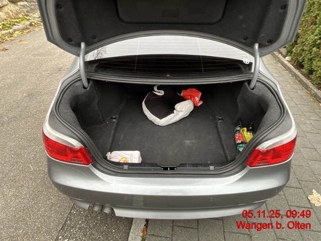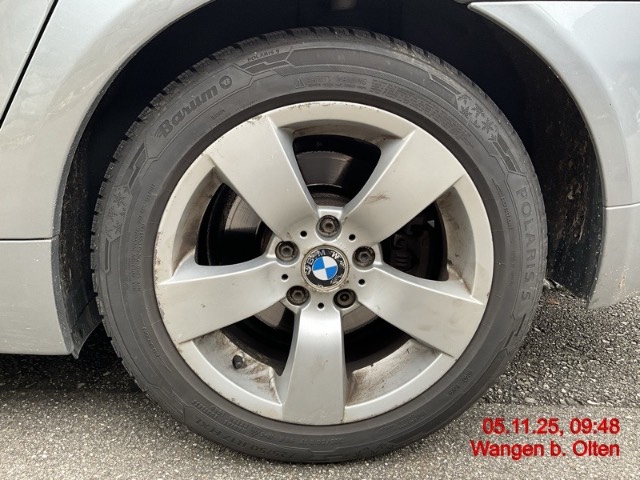 Mittelarmlehne vorne, Leseleuchten hinten, Lackierung: Uni-Lackierung, Höhenverstellbare Gurten vorne, Drittes Bremslicht, Digital Uhr, Leseleuchten vorne, Partikelfilter und Oxydationskatalysator, Scheibenwaschdüsen beheizt, iDrive-System, Räder: Reifendruck-Kontrollanzeige, Vordersitze elektrisch verstellbar, Dynamische Stabilitätskontrolle (DSC), Lenkrad: Multifunktionslenkrad, Scheibenwischer vorne mit Regensensor und automatischem Einschalten der Abblendlichter, Getriebe: 6-Gang-Getriebe, Stossstangen in Wagenfarbe, Tageskilometerzähler, Applikationen, Zentralverriegelung mit Fernbedienung, Klimatisierungsautomatik, Innenlicht-Abschaltverzögerung, Weisse Blinkleuchten, Lenkung, elektrisch unterstützt, Aussenspiegel und Türgriffe in Wagenfarbe, Wegfahrsperre elektronisch, ISOFIX Kindersitzvorrichtung, Info-Display, Drehzahlmesser, Gurtstraffer vorne, Antennen-Diversity, Zweiklanghorn, Lichtwarnsummer, Beide Make up-Spiegel beleuchtet, Grün getönte Scheiben, Wartungsintervall-Anzeige, Leichtmetallfelgen im Sternspeiche 138 17J mit Pneu, Antiblockiersystem (ABS), Aussentemperaturanzeige, Bremsassistent (BAS), Airbag: Airbag Fahrer und Beifahrer, Lederlenkrad, Ausstiegsleuchten in den Türen, Aussenspiegel rechts und links beheizt und elektrisch verstellbar, asphärisch gewölbtes Spiegelglas, Bremsbelag-Verschleissanzeige, Window-Kopfairbags, Nebelscheinwerfer, Leuchtweitenregulierung elektrisch, Steckdose, Automatische Stabilitäts- und Traktions- kontrolle, Kartentaschen an den Rückenlehnen, 3-Punkt-Sicherheitsgurte auf allen Plätzen, Oelstandsanzeige, Verbandskasten, Heckscheibenheizung, Licht: Nebelschlussleuchte, Tempomat, Wendematte für Gepäckraumboden, Veloursfussmatten vorne und hinten, Beleuchtetes und abschliessbares Handschuhfach, Stoff-Ausstattung, Lenkrad: Lenkrad längs- und höhenverstellbar, Allradantrieb permanent, Seitenairbags, Scheibenwischer vorne mit Intervall, Bordcomputer, Elektrische Fensterheber vorne + hinten, Pollenfilter (Staubfilter), Wassertemperaturanzeige