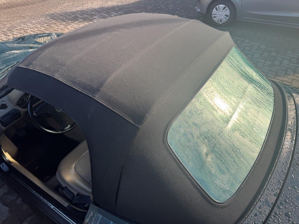 Airbag: Airbag Fahrer und Beifahrer, Zentralverriegelung, Sportlenkrad und Schalthebelgriff in, Stossstangen und Aussenspiegel in Wagenfarbe, Antiblockiersystem (ABS), Wassertemperaturanzeige, Veloursfussmatten vorne, Cabriolet-Verdeck, Gurtstraffer vorne, Digital Uhr, Tageskilometerzähler, Scheibenwischer vorne mit Intervall, 5-Gang-Getriebe, 4 Leichtmetallfelgen 15J mit Pneu, Aussenspiegel rechts und links elektrisch verstellbar, Katalysator geregelt, Leuchtweitenregulierung elektrisch, Vordersitze elektrisch verstellbar, Servolenkung geschwindigkeitsabhängig, Licht: Nebelschlussleuchte, Drittes Bremslicht, Stoff-Ausstattung, Wegfahrsperre elektronisch, Drehzahlmesser, Beleuchtetes und abschliessbares Handschuhfach, Elektrische Fensterheber vorne, Schutzhülle zu Verdeck, Grün getönte Scheiben, Automatische Stabilitäts- und Traktions- kontrolle