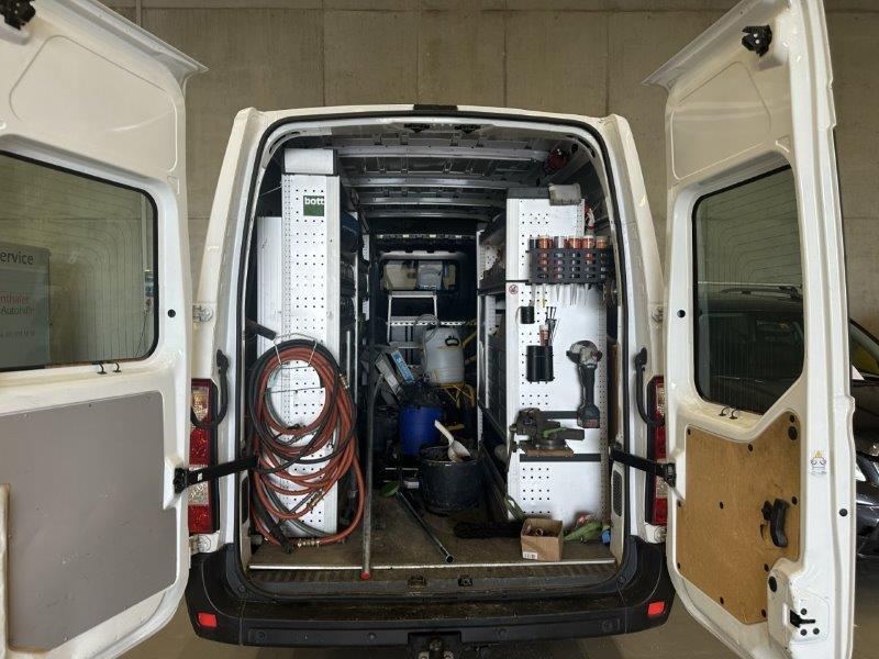 Scheibenwischer vorne mit Intervall, Kunststoffbodenmatte vorne, Sitze: Fahrersitz höhenverstellbar, 12-Volt-Steckdose vorne, Leuchtweitenregulierung von innen, Alternator verstärkt, 3-Knopf-Schlüssel, Wegfahrsperre elektronisch, Automatische Türverriegelung bei einer Geschwindigkeit von mehr als 5 km/h, Innenverkleidung des Laderaumes halbhoch, Räder: Radzierblenden, Kraftstofftank 80 Liter, Stahlräder 16J, Media: Bordcomputer, Leseleuchten vorne, Lenkrad: Servolenkung, Radio/USB,Lenkradbedienung,Bluetooth 2 Lautsprecher, Bergabfahrassistent (HBC), Handschuhfach, Kopfstützen vorne höhenverstellbar, Pollenfilter (Staubfilter), Mittelarmlehne vorne, Gurtstraffer vorne, Räder: Reifenreparatur-Kit (Tire Fit), Elektrische Fensterheber vorne mit Schnellsenktaste fahrerseitig, Laderaumtrennwand mit Fenster, Notbremsassistent, Befestigungsösen im Laderaum 8 Stk. bei L1, 10 bei L2, Antriebsschlupfregelung (ASR), Eco-Mode, Airbag: Fahrerairbag, Stossfänger vorne und hinten schwarz, Elektronisches Stabilitäts-Programm (ESP) mit Antischlupfregelung (ASR) und Hill Holder, Getönte Scheiben, Drehzahlmesser, 3-Punkt-Sicherheitsgurte auf allen Plätzen, Antiblockiersystem (ABS), Partikelfilter und Oxydationskatalysator, Polster: Stoff-Ausstattung, Ablage im Armaturenbrett, Anhänger Stabilisierungkontrolle TSA, Schiebetüre rechts, Zentralverriegelung mit Fernbedienung, Ablagen in den Türen, Sitze: Beifahrerdoppelsitzbank mit umklappbarer Rückenlehne in der Mitte, schwenkbare Arbeitsfläche sowie Staufach, Türen: Flügeltüren hinten 180°, verblecht, Laderaumbeleuchtung, Getriebe: 6-Gang-Getriebe