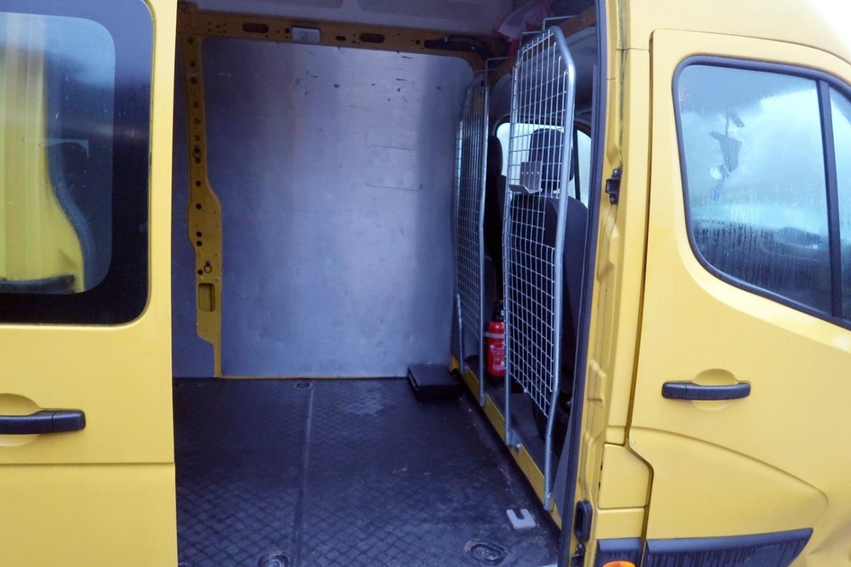 Kunststoffbodenmatte vorne, Elektronisches Stabilitäts-Programm (ESP) mit Antischlupfregelung (ASR) und Hill Holder, Zentralverriegelung mit Fernbedienung, Schiebetüre rechts, 3-Punkt-Sicherheitsgurte auf allen Plätzen, Leseleuchten vorne, Handschuhfach, Automatische Türverriegelung bei einer Geschwindigkeit von mehr als 5 km/h, Bergabfahrassistent (HBC), Radio/USB,Lenkradbedienung,Bluetooth 2 Lautsprecher, Partikelfilter und Oxydationskatalysator, Elektrische Fensterheber vorne mit Schnellsenktaste fahrerseitig, Notbremsassistent, Ablage im Armaturenbrett, Getönte Scheiben, Sitze: Fahrersitz höhenverstellbar, Getriebe: 6-Gang-Getriebe, Wegfahrsperre elektronisch, Airbag: Fahrerairbag, Ablagen in den Türen, Leuchtweitenregulierung von innen, Alternator verstärkt, Stossfänger vorne und hinten schwarz, Lenkrad: Servolenkung, Polster: Stoff-Ausstattung, Türen: Flügeltüren hinten 180°, verblecht, Antriebsschlupfregelung (ASR), Pollenfilter (Staubfilter), Befestigungsösen im Laderaum 8 Stk. bei L1, 10 bei L2, Räder: Radzierblenden, Laderaumbeleuchtung, Media: Bordcomputer, Räder: Reifenreparatur-Kit (Tire Fit), Drehzahlmesser, Antiblockiersystem (ABS), Mittelarmlehne vorne, Kraftstofftank 80 Liter, Kopfstützen vorne höhenverstellbar, Scheibenwischer vorne mit Intervall, Eco-Mode, 12-Volt-Steckdose vorne, Anhänger Stabilisierungkontrolle TSA, Stahlräder 16J, Sitze: Beifahrerdoppelsitzbank mit umklappbarer Rückenlehne in der Mitte, schwenkbare Arbeitsfläche sowie Staufach, Gurtstraffer vorne, Laderaumtrennwand mit Fenster, 3-Knopf-Schlüssel
