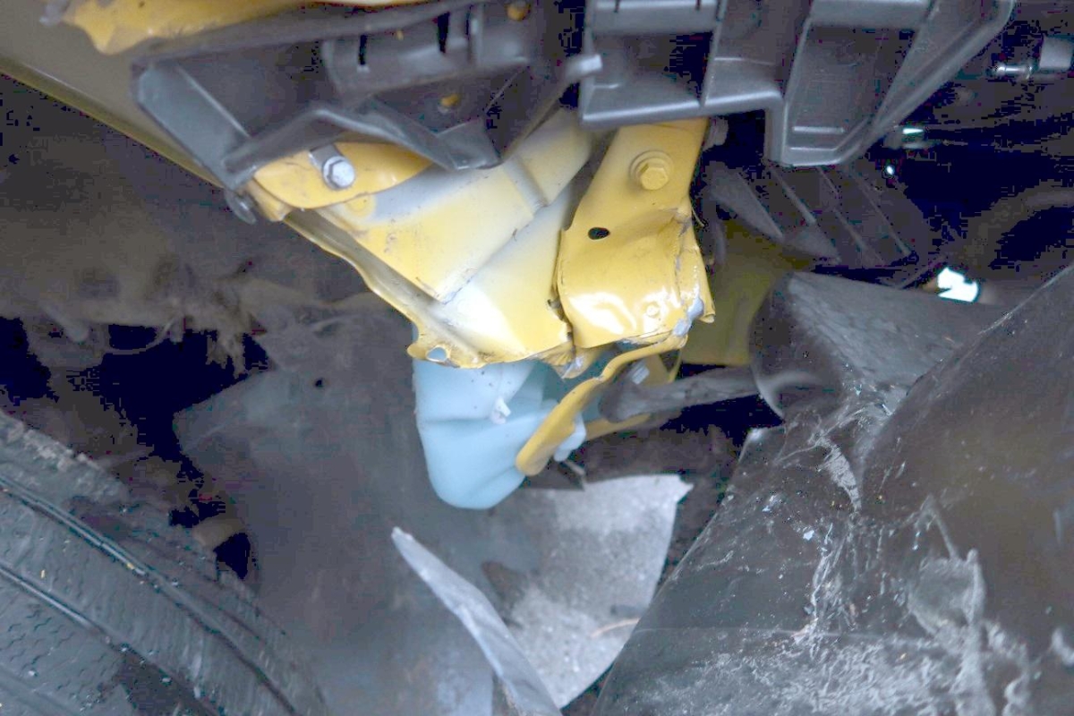 A-Säule, Achsträger, Antriebswelle, Front rechts, Frontblech, Kotflügel rechts, Lenkung, Motorhaube, Rad vorne rechts, Radaufhängung vorne rechts, Radhaus vorne rechts, Scheinwerfer rechts, Schlossträger, Schweller rechts, Stosstange vorne, Türe vorne rechts
