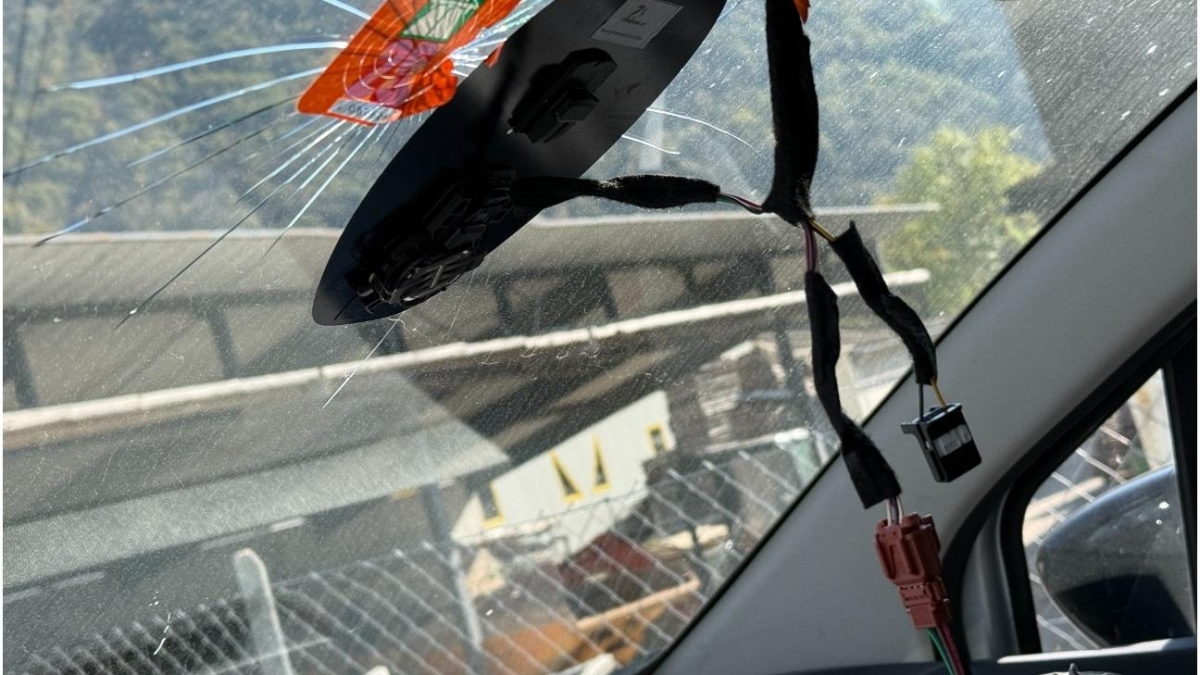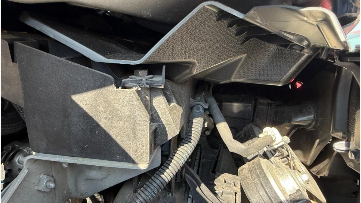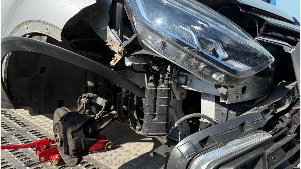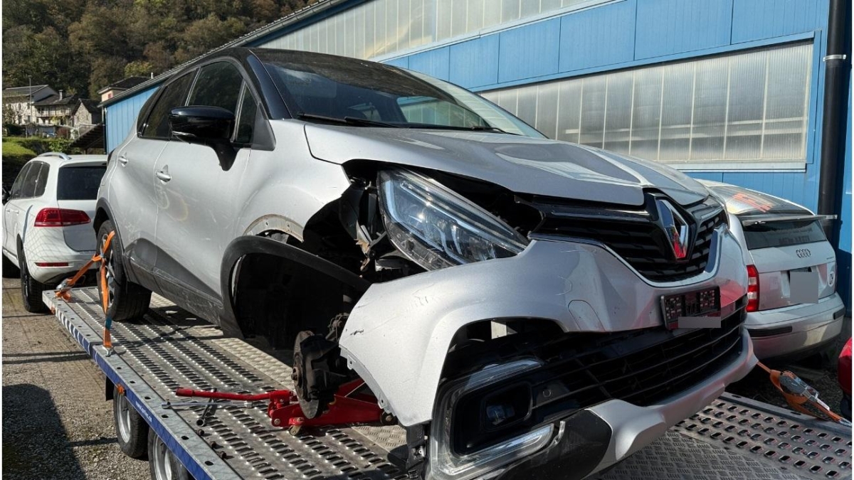 Frontscheibe, Kotflügel rechts, Kühler, Lenkung, Motorhaube, Motorträger, Rad vorne rechts, Radaufhängung vorne rechts, Scheinwerfer rechts, Stosstange vorne, Türe hinten rechts, Vorderachse