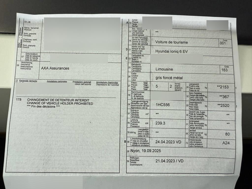 12-Volt-Steckdose vorne, Assist: Automatisches Notrufsystem eCall, Head-Up Display, 3-Punkt-Sicherheitsgurte auf allen Plätzen, Elektrisch einklappbare und heizbare Aussenspiegel mit integrierten Seitenblinkern, Assist: Automatische Ein- und Ausparkfunktion mit Fernbedienung, Hochvoltbatterie mit 800 V-Technologie (400 V-kompatibel), Anfahralarm Vorderfahrzeug, Ladegerät (On-Board Charger) dreiphasig bis zu 11 kW, Licht: LED-Tagfahrlicht, Sitze: Fahrersitz mit Memoryfunktion, Licht: Nebelschlussleuchte, Schlüsselloses Zugangs- und Startsystem Smart Key, Mittelarmlehne hinten mit Getränkehalter, Räder: Reifendruck-Kontrollsystem High Line, Active Sound Design, Wärmepumpe, Assist: 360° Rundumsichtkamera, Digitale Armaturentafel mit 12.3” TFT LCD Anzeige, Lenkrad: Lenkradheizung, Media: USB-A-Anschluss vorne, Lenkrad: Lenkrad mit vier interaktiven LED-Leuchten im Pixel-Design, Lenkrad: Lenkrad längs- und höhenverstellbar, Wegfahrsperre elektronisch, Assist: Aufmerksamkeitsassistent, ICCB-Ladekabel mit Typ 12-Stecker, Licht: Drittes Bremslicht, Media: Navigationssystem mit 12.3″-Touchscreen, Servolenkung geschwindigkeitsabhängig, Lenkrad: Wippen am Lenkrad für regeneratives Bremsen mit intelligentem i-PEDAL-Modus, Privacy Glass, abgedunkeltes Scheibenglas hinten (ab B-Säule), Heckscheibenheizung, Getriebe: 1-Gang Getriebe, Polster: Ledersitze, Räder: Reifenreparatur-Set, Media: Kabelloses Laden für Smartphone, Media: Telematikdienst Bluelink und LIVE Services (3 Jahre gratis), Schnellladeanschluss CCS bis zu 350 kW, Fensterheber vorne mit Auf-/Abwärtsautomatik und Einklemmschutz, Licht: Fernlichtassistent, Assist: Spurhalteassistent, Media: Premium Soundsystem Bose mit Verstärker, Subwoofer und Center-Speaker, Eingelassene Türgriffe in Wagenfarbe, automatisch ausklappend, Sitze: Lendenwirbelstütze Fahrersitz, pneumatisch einstellbar, Automatisch abblendender Innenspiegel, Airbag: Center Airbag vorne, Garantie: Hochvoltbatterie: 8 Jahre / 160 000 km, Assist: Autobahn- und Stauassistent, Assist: Notbremsassistent mit Fussgänger-/Fahrraderkennung, Zentralverriegelung mit Fernbedienung, Lenkrad: Audiofernbedienung am Lenkrad, Räder: 18” Leichtmetallfelgen mit Reifen 225/55 R18, Media: 2x USB-C-Anschlüsse vorne, Sitze: ISOFIX-Kindersitzverankerung hinten, V2L-Technologie: 230V-Steckdosen innen und aussen (via Adapter), Assist: Einparkhilfe vorne und hinten mit Bremsassistent, Airbag: Deaktivierung Frontairbag Beifahrerseite, Sitze: Lendenwirbelstütze Beifahrersitz, pneumatisch einstellbar, Airbag: Front- und Seitenairbags vorne, Vorhangairbags vorne und hinten, Drive Mode Select, Licht: Matrix-LED-Scheinwerfer im Pixel-Design, Assist: Elektrische Parkbremse mit Auto-Hold-Funktion, Elektrisches Glasschiebedach, Media: 2x USB-C-Anschlüsse hinten, Sitze: Elektrisch verstellbarer Fahrer- und Beifahrersitz, ABS und TCS, Media: MapCare Lifetime – lebenslange Updates (exkl. Arbeitsleistung), Lackierung: Pearl-Lackierung Byte Blue, Elektronisches Stabilitätsprogramm ESP mit Multikollisionsbremse, Assist: Notbremsassistent mit Abbiege- und Kreuzungsfunktion, Regensensor, Licht: Lichtautomatik, Heckspoiler schwarz, Assist: Berganfahrhilfe, Assist: Videoübertragung des toten Winkels bei Richtungsanzeige, Klima: 2-Zonen-Klimaautomatik mit Anti-Beschlagsystem, Alu-Pedale, Elektrische Heckklappe, Media: 8 Lautsprecher, Garantie: 5 Jahre ohne Kilometerbegrenzung, Assist: Ausstiegsassistent, Media: Multi-Bluetooth mit Freisprecheinrichtung, Media: Android Auto – und Apple CarPlay -Funktion, LED-Gepäckraumbeleuchtung vorne und hinten, Assist: Rückfahrkamera mit Rückspiegelfunktion, Vorbereitung für Anhängevorrichtung (ohne 13-polige Steckdose), Sitze: Kopfstützen vorne und hinten, Bordcomputer, Zweifarbige Ambientebeleuchtung, Assist: Tempomat mit Geschwindigkeitsbegrenzer, Media: Digitalradio DAB+, Sitze: Sitzheizung vorne und hinten, Sitze: Vordersitze mit Relaxfunktion, Assist: Insassenalarm mit Ultraschallsensoren, Licht: LED-Rückleuchten im Pixel-Design, Schwarzglänzende Aussenspiegel, Garantie: Garantie 12 Jahre gegen Durchrostung, Assist: Querverkehrswarner hinten mit Bremsassistent, Akustik-Verbundglas vorne und hinten, Assist: Aktiver Totwinkelassistent, Wärmedämmende Frontscheibe und Scheibenglas vorne, Sitze: Rücksitze getrennt abklappbar (60/40), Virtuelles Motorengeräusch VESS, Sitze: Sitzbelüftung vorne, Haifischantenne, Akustik-Frontscheibe, Batterieheizsystem