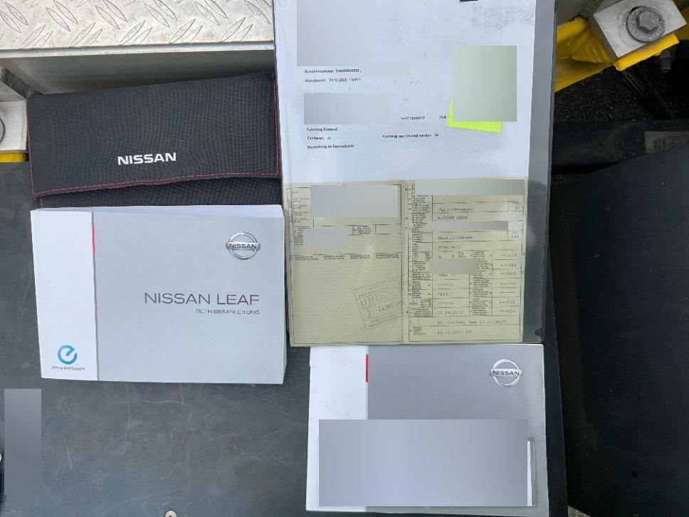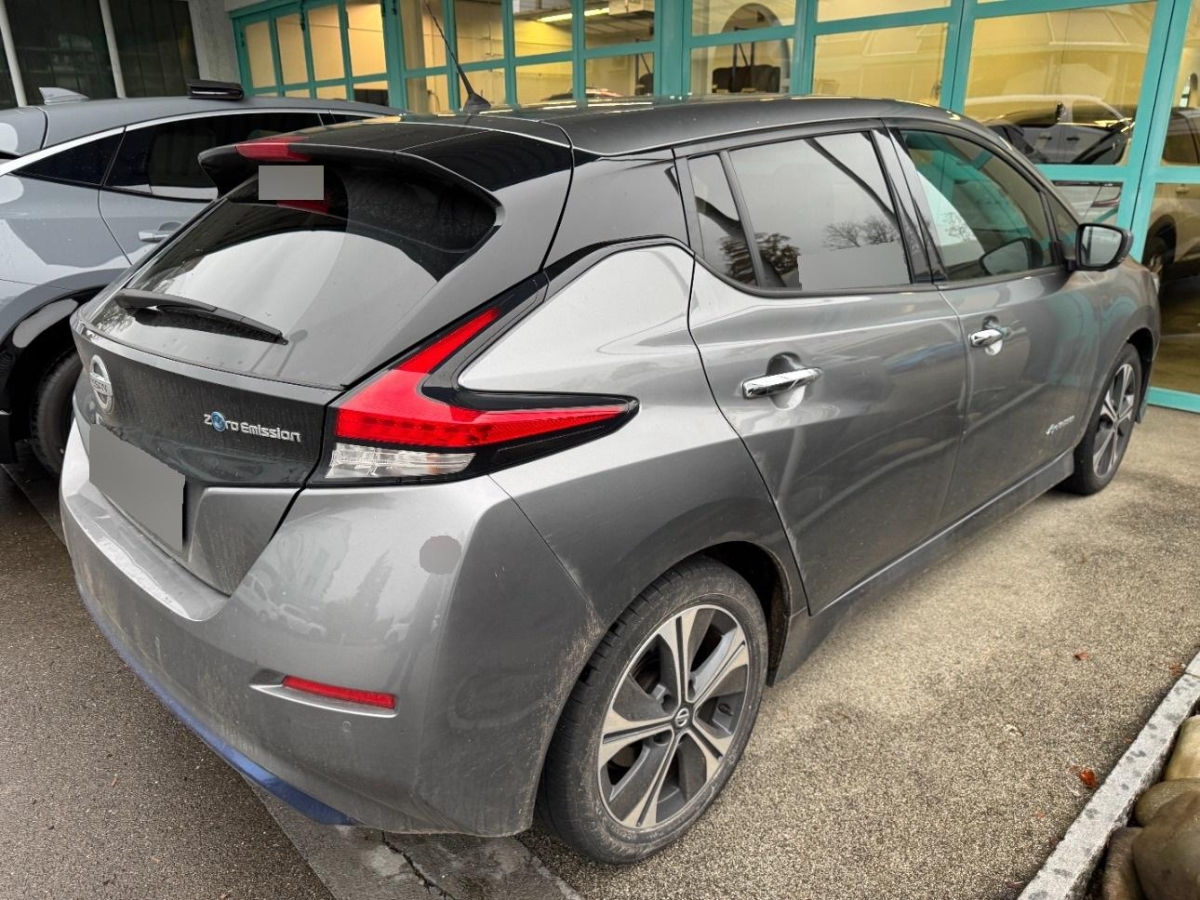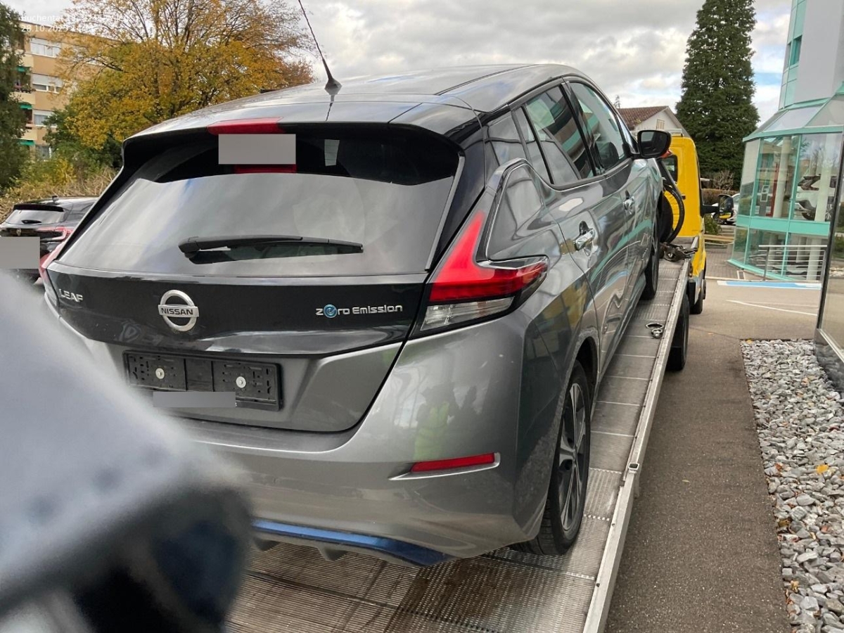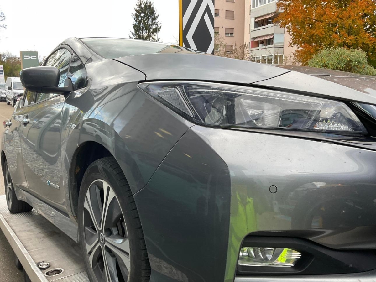 Räder: 4 Leichtmetallfelgen 17J mit Pneu, Sitze: Rücksitzbank asymetrisch geteilt umlegbar, Aussentemperaturanzeige, Haltegriffe für Beifahrer und Fondpassagiere, Pollenfilter (Staubfilter), Akustisches Annäherungssignal intermittierend, nach vorne abstrahlend, bis 30 km/h, Stufenloser Automat, Assist: Regensensor für Scheibenwischer vorne, Innenspiegel automatisch abblendbar, Stossfänger in Wagenfarbe und verkratzungshemmend lackiert, Defrosterdüsen für Front- und Seitenscheiben, Assist: Warnblinkautomatik bei Vollbremsung, Lenkrad höhenverstellbar, Armlehnen an den Türen, Mode 3 Ladekabel Typ 1 / Typ 2, Elektronische Parkbremse, Querverkehrsassistent hinten, Ladeanschluss für Wechselstrom bis 6.6kW, Akustisches Warnsignal bei nicht angelegtem Sicherheitsgurt, Kartentaschen an den Rückenlehnen, Lichtsensor, Dachspoiler, Lackierung: Uni-Lackierung, Aussenspiegel in Wagenfarbe, Gurtstraffer mit Gurtkraftbegrenzer vorne, 12-Volt-Steckdose vorne, Halogen-Fernlicht, Lenkrad: Lenkradfernbedienung, Sitze: ISOFIX-Befestigungspunkte für Kindersitz an den äusseren Rücksitzen, Lederlenkrad, Sitze: Fahrersitz höhenverstellbar, NissanConnect EV: Multimedia System, EV Telematiksystem, NissanConnect EV App, TPMS Reifendrucküberwachungssystem, Servolenkung geschwindigkeitsabhängig, Abgedunkeltes Scheibenglas (ab B-Säule), LED Heckleuchten, Licht: LED-Tagfahrlicht, Bordcomputer mit Energieverbrauchanzeige und Fahrstatistik, Blinker in Aussenspiegel, Kopfstützen vorne höhenverstellbar, Berganfahrhilfe, Halogenscheinwerfer, Aussenspiegel rechts und links elektrisch verstellbar, Fahrerassistenzpaket: autonomer Notbrems -Assistent, Fernlicht-Assistent, Spur- halteassistent, Verkehrszeichenerkennung, Airbag: Airbag Fahrer und Beifahrer, Kindersicherung an den hinteren Türen, Frontscheibe und Front-Seitenscheiben mit UV- und Infrarotfilter-Beschichtung, Spurhalteassistent Lane Assist, Sprachsteuerung, Make up-Spiegel links, Abstandswarner, Ladefunktionsanzeige auf dem Armaturenbrett, Polster: Sitzbezüge Stoff, Nebelscheinwerfer, Kopfstützen hinten höhenverstellbar, Nebelschlussleuchte, Media: Connected / Android Auto / Apple CarPlay, Wegfahrsperre elektronisch, Zentralverriegelung mit Fernbedienung, 3-Punkt-Sicherheitsgurte auf allen Plätzen, Sitze: Mittelarmlehne vorne, Elektronisches Stabilitäts-Programm (ESP), Mittelkonsole mit Ablagefach, Klimatisierungsautomatik, INTELLIGENT KEY Entriegelungsmöglichkeit der Abdeckung der Ladeanschlüsse, Keyless Entry und Starten des Motors, Airbag: Airbag Beifahrer deaktivierbar, Dachantenne, Beleuchtetes Handschuhfach, Adaptiver Tempomat mit automatischer Geschwindigkeitseinstellung, Akustisches Warnsignal nach hinten abstrahlend bei eingelegtem Rückwärtsgang, Elektrische Fensterheber vorne und hinten mit Komfortbetätigung und Einklemmschutz, Intelligenter AROUND VIEW MONITOR für360° Rundumsicht* mit Parksensoren vorne und hinten, Kofferraumbeleuchtung, Müdigkeitserkennung, Türaussengriffe in Chromoptik, Drittes Bremslicht, Aussenspiegel automatisch einklappbar, CHAdeMo Schnelladeanschluss vorn, Vehicle2Grid Ready, Gleichstrom (bis 50kW), Totwinkel-Assistent, Dual-Display für Geschwindigkeitsanzeige Batteriekapazitäts- und Restreichweiten- anzeige, Energieverbrauchsanzeige, Leseleuchten vorne, Fernentriegelung für Abdeckung der Ladeanschlüsse, vom Innenraum elektronisch (und elektronisch per INTELLIGENT KEY), Brillenfach, Seitenairbags vorne und Kopfairbags vorne und hinten, Start-/Stop-Knopf, EVSE-Kabel (Mode2-Sicherheitssystem) mit Haushalts-Stecker, Make up-Spiegel rechts, Scheibenwischer vorne und hinten mit Intervall, Abblendlichtausschaltverzögerung ‘Follow me home’, ABS, EBD elektronische Bremskraftverteilung, Bremsassistent (BAS), Automatische Türverriegelung geschwindigkeitsabhängig, Multimedia-System mit 7” Touchscreen, Navigation, Sprachsteuerung, CD, MP3, Bluetooth, USB- und Audioeingang (iPod- kompatibel, 6 Lautsprecher