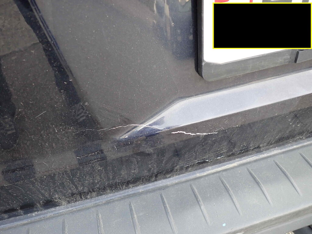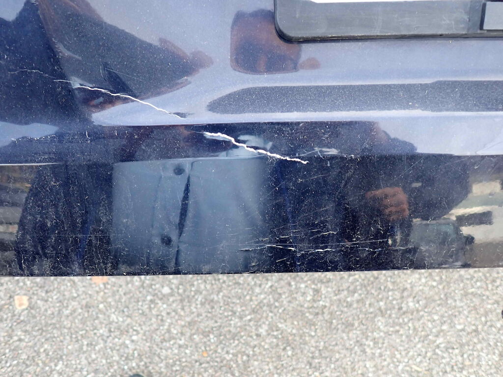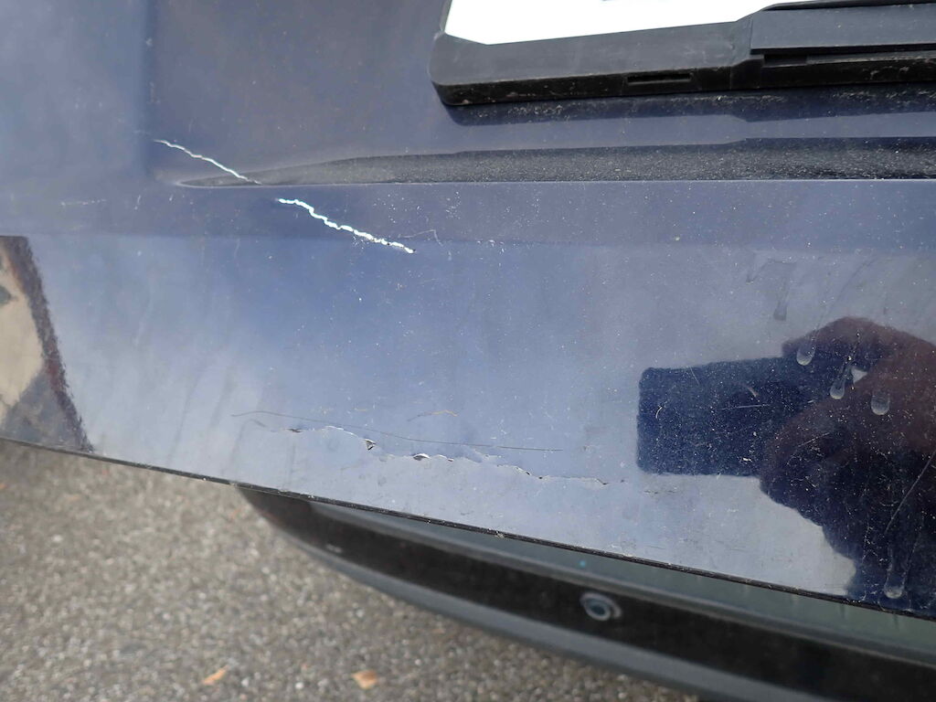 Heckklappe und Heckstossfänger eingedrückt; Heck hinten links gestaucht, Seitenwand hinten links in Türe hinten links geschoben