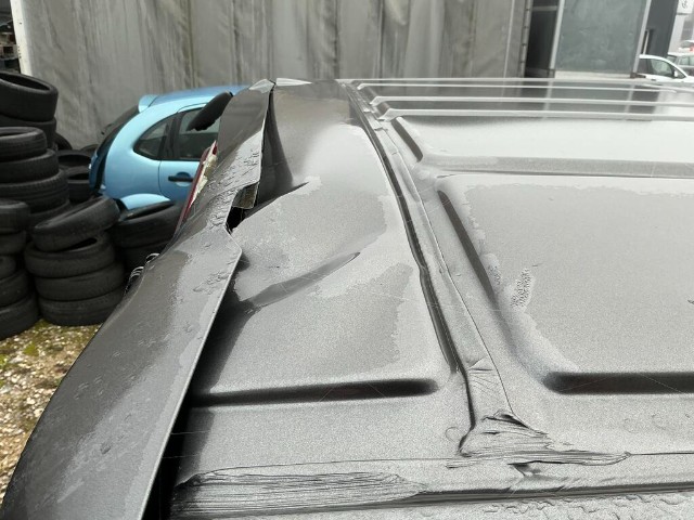 Beschädigungen Heck Heck eingedrückt. Seitenwand hinten rechts eingedrückt/aufgestaucht. Kofferboden eingedrückt. Heckklappe eingedrückt. Motor Innenraum Glas Dach Weitere Beschädigungen |