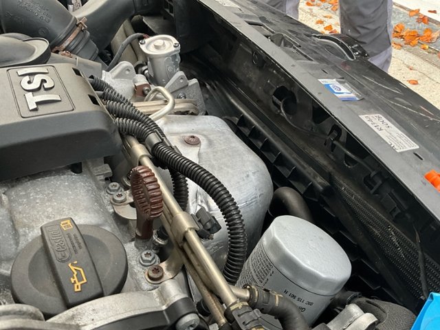 Front Frontblech/Maskenblech eingedrückt. Motor |