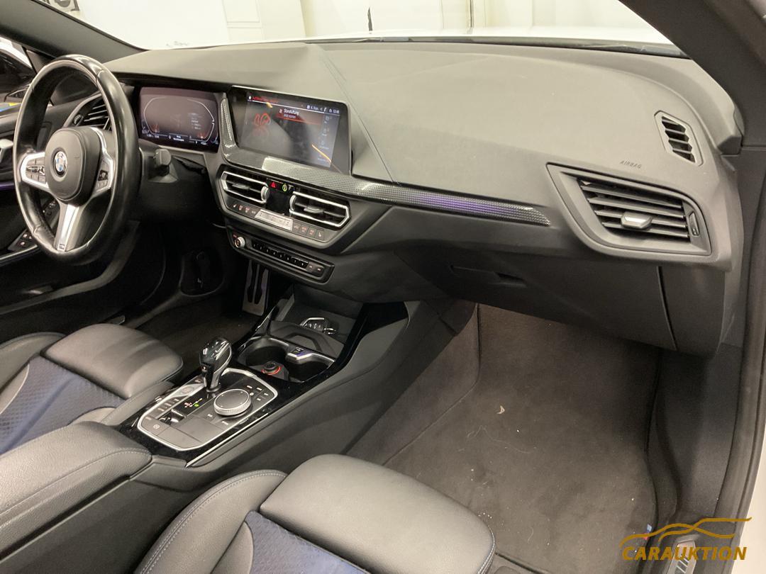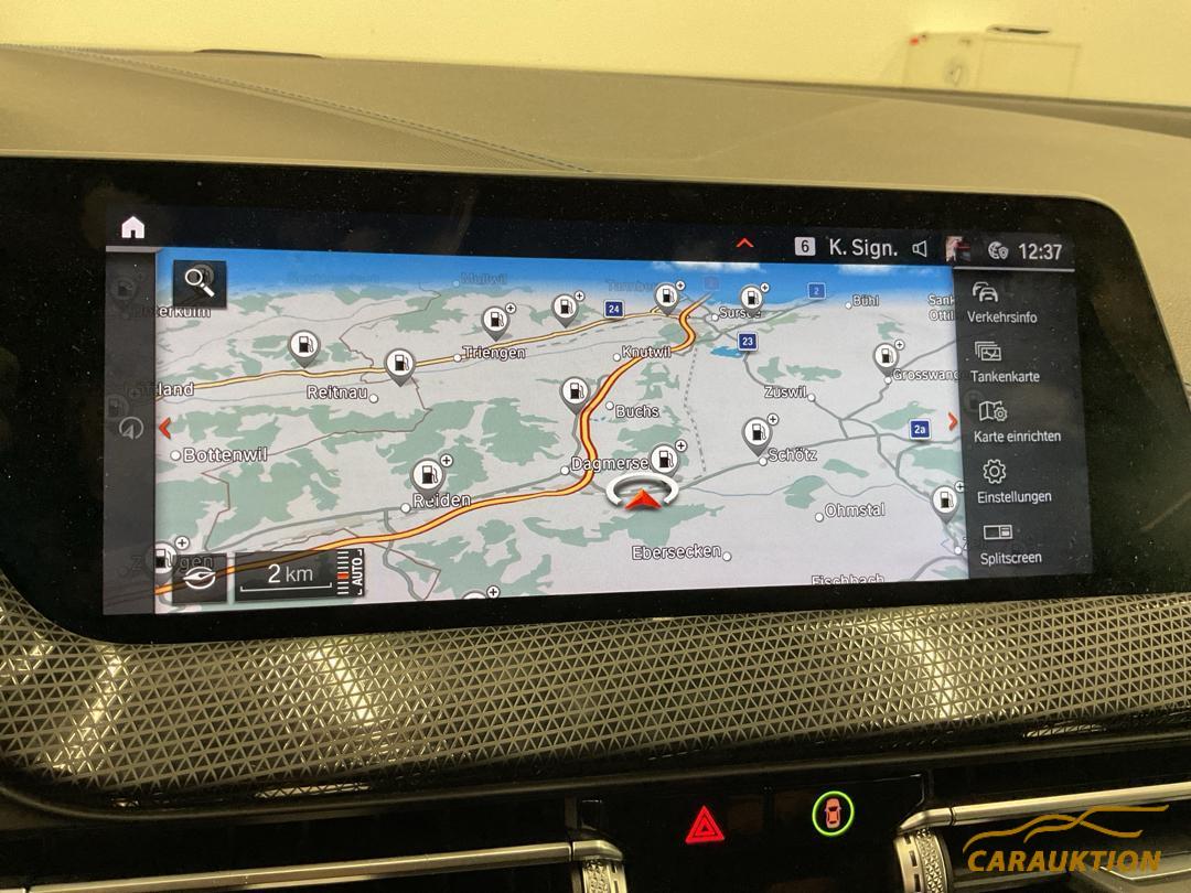 Paket: M Aerodynamicpaket (Nierenstäbe in Aluminium satiniert, Nierenrahmen in Chrom, Stossfängerverkleidung vorn und Seitenschwellerverkleidungen mit spezifischem M Design in Wagenfarbe, Stossfängerverkleidung hinten mit spezifischem M Design in Wagenfarbe mit Einsatzteil in Dark Shadow), Paket: Innen- und Aussenspiegelpaket (Bordsteinautomatik Beifahrerspiegel, Innen- und Aussenspiegel Fahrerseite, automatisch abblendend, Aussenspiegel, elektrisch anklappbar), Paket: Ablagenpaket (Mittelkonsole, hinten: eine Steckdose (12 V) sowie eine Doppel-USBBuchse (nur Laden: Typ C/3,0 A), Multifunktionshaken, Klappfach Instrumententafel Fahrerseite, Steckdose (12 V), rechts, mit Klappdeckel, Netz, schwarz, mit Rahmen, links, rechts, Fahrer- und Beifahrersitz: Netze an Sitzlehnerückseite, jeweils in Farbe der Sitzblende), Paket: Connected Package Professional (Media: Connected Navigation inkl. Real Time Traffic Information und Hazard Preview (3 Jahre), Media: Connected Music, Remote Services – Nutzung von Remote Services (u.a. Öffnen/Verriegeln der Türen, Start der Fahrzeugbelüftung) – Fahrzeugstandort über den Vehicle Finder, Media: Connected Teaser Package (3 Monate: BMW Music), Media: Concierge Service – Telefonischer Concierge Service mit einem Agenten – Zugriff bspw. auf Branchenverzeichnisse, Points of Interest, Öffnungszeiten, Fluginformationen, Adressen – Buchung von Hotelzimmern, Media: Smartphone Integration inkl. Apple CarPlay Vorbereitung und Android Auto(unbegrenzte Laufzeit, Media: In-Car Experiences (3 Jahre), Media: Connected Parking inkl. On-Street Parking Information (3 Jahre)), Paket: Lichtpaket (Ausstieglichter in den Türen (vorne und hinten), Fussraumleuchten, vorne weiss, Vorfeldbeleuchtung, Leseleuchten, vorne und hinten, Make-Up-Spiegel-Leuchten, Beleuchtung der Aussenspiegel und der Türöffnerhebel (vorne und hinten), Lichtquellen für Ambiente Beleuchtung (Interieur) in LED-Technologie, Lichtfarbe umschaltbar in 6 Lichtfarben (Weiss, Bronze, Orange, Flieder, Grün, Blau) und Helligkeit einstellbar, LED-Projektion BMW aus dem Aussenspiegel auf Fahrerseite, Ambiente Beleuchtung Centerstack), Paket: Aussenspiegelpaket (Spiegelmemory über Personal Profile), Komfortzugang – Schlüsselloser Zugang zum Fahrzeug – Welcome Inszenierung bei Annäherung ans Fahrzeug – Automatische Entriegelung bei Annäherung ans Fahrzeug (in Fahrzeugrichtung) – Automatische Verriegelung beim Entfernen vom Fahrzeug – Berührungsloses Öffnen und Schliessen der Heckklappe (nicht mit Anhängerkupplung mit abnehmbarem Kugelkopf) Beinhaltet den BMW Digital Key: – Ver- und Entriegeln sowie Starten des Fahrzeugs unter Verwendung eines kompatiblen Smartphon. – Key Card mit NFC-Techn., Innenspiegel automatisch abblendbar, M Hochglanz Shadow Line mit erweiterten Umfängen – Nierenrahmen und -stäbe in Schwarz hochglänzend – Endrohrblenden in Schwarz Chrom, Klima: 2-Zonen Klimaautomatik inkl. Mikro- und Aktivkohlefilter – 2-Zonen-Klimaautomatik mit erweiterten Umfängen – Temperaturregelung für Fahrer und Beifahrer getrennt – SYNC-Funktion: Fahrereinstellungen gelten für den gesamten Fahrzeuginnenraum – Automatikprogramm mit 5 Intensitätsstufen für Fahrer und Beifahrer getrennt – Beschlag- und Solarsensor, Mikro- und Aktivkohlefilter – Standlüftung – Fond-Belüftungsauslässe in Mittelkonsole, Räder: Reifenreparatur-Set (Tire Fit), Sonnenschutzverglasung, Panorama-Glasdach, Sitze: Lordosenstütze für Fahrer und Beifahrer, Decor: Interieurleisten Illuminated Berlin beleuchtet, Assist: Parking Assistant Kamera- und ultraschallbasiertes Assistenzsystem bestehend aus: – Park Distance Control (PDC) – Rückfahrkamera – Active Park Distance Control – Parkassistent – Rückfahrassistent – Einparkhilfe Seite, Sitze: Sitzheizung für Fahrer und Beifahrer, Licht: LED Nebelscheinwerfer