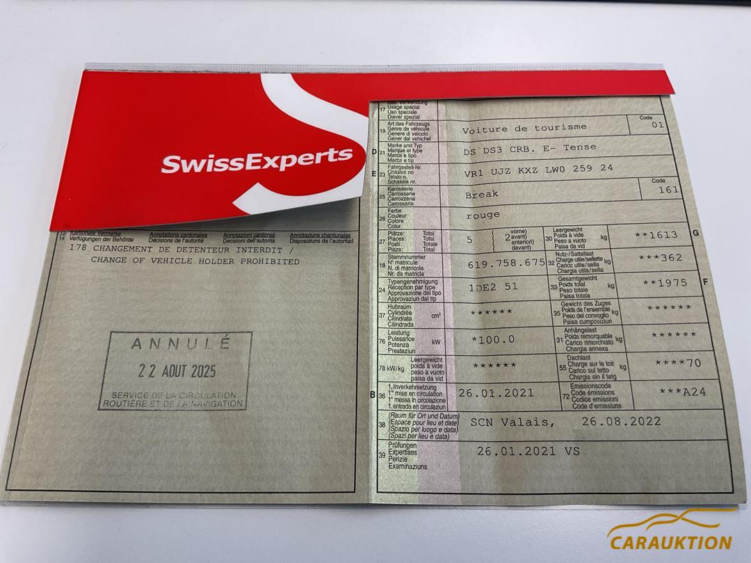 Lackierung: Metallic-Lackierung Polar-Weiss, Reifendruck-Kontrollanzeige, Airbag: Airbag Fahrer und Beifahrer, ISOFIX Kindersitzvorrichtung, Lenkrad: Lenkrad längs- und höhenverstellbar, Elektronisches Stabilitäts-Programm (ESP), Getriebe: 1-Gang Getriebe automatisiert, Assist: Berganfahrhilfe, Innenleuchten LED, Fussmatten vorne und hinten, Türgriffe aussen verchromt, Media: DS Connect Radio mit Touchscreen, Bluetooth-System und USB, MirrorScreen, Apple CarPlay / Android Auto, Klima: Klimatisierungsautomatik, Kartentaschen an den Rückenlehnen, Aussenspiegel rechts und links beheizt, elektrisch verstell- / und einklappbar, Garantie: 3 Jahre oder 80’000 km, Zentralverriegelung m Funkfernbedienung 2 Schlüssel mit Funkfernbedienung, Licht: LED-Tagfahrlicht, Airbag: Window-Kopfairbag für Fahrer und Beifahrer, Dunkel getönte Heckscheibe, Scheibenwischer vorne mit Intervall, Airbag: Airbag Beifahrer deaktivierbar, Assist: Geschwindigkeitsregler und -begrenzer, Inspiration DS PERFORMANCE Line mit dunklem Dachhimmel – Glänzender Kühlergrill – Rand der Heckleuchten mit CROSSBACK-Signatur und DS-Logo – Dekor der Alcantara PERFORMANCE Line – Guilloschierung “Clous de Paris” Matt Schwarz – Aluminium Pedale – Schaltknauf Vollnarbenleder – DS PERFORMANCE Einstiegsleiste – Alcantara Sitze mit Basalt-Geflecht – Vollnarbiges Lederlenkrad – Zentrale Armlehne – Ablage auf Rückseite der Vordersitze – LED-Deckenleuchten, LED-Leselampen hinten, LED-FUssraumbeleuchtung, DS Wings, Licht: Drittes Bremslicht, Dunkel getönte Scheiben hinten, Sonnenblende Fahrer und Beifahrerseite mit Spiegel, Elektrische Fensterheber vorne + hinten mit Komfortschliessung, Aluminium Pedale, Lenkrad: Lederlenkrad, Rahmenloser Innenspiegel automatisch abblendbar