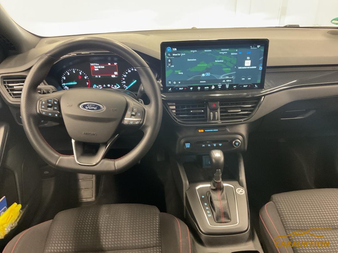 Assist: Elektronisches Sicherheits- und Stabilitätsprogramm (ESP) mit Sicherheits-Bremsassistent (EBA – Emergency Brake Assist) und Traktionskontrolle, Lenkrad: Schaltwippen am Lenkrad, Sitze: Fahrersitz, manuell höhenverstellbar, mit einstellbarer Lendenwirbelstütze, Doppelrohr- Auspuffanlage, Assist: Antiblockier-Bremssystem (ABS) mit elektronischer Bremskraftverteilung (EBD) – und elektronischem Bremskraftverstärker, Assist: Pre-Collision-Assist inkl. Auffahrwarnsystem (FA – Forward Alert) mit Fussgänger- und Fahrraderkennung, Lenkrad: ST-Line Design, unten ablageflacht und mit roten Ziernähten in Sensico Leder-Optik, Sonnenblende Fahrer und Beifahrerseite, FordPass Connect inkl. Live-Traffic-Verkehrsinformation, Assist: Geschwindigkeitsregelanlage, Polster: Stoffpolsterung – in Anthrazit mit Ziernähten in Rot, Kopfstützen vorn (2) und Kopfstützen hinten (3), höhenverstellbar, Selektiver Fahrmodus-Schalter, Sitze: Sportsitze vorn mit verstärktem Seitenhalt, Lederschaltknauf, Innenspiegel automatisch abblendbar, Befestigungspunkte hinter der 2. Sitzreihe für die Montage des Sicherheitstrennnetz, Start-Stop-System, Umrandung der Seitenscheiben in Schwarz, Heckscheiben-Wisch-/Waschanlage, Räder: Reifendruckkontrollsystem, Katalysator geregelt, Klima: Klimaanlage mit automatischer Temperaturkontrolle (2-Zonen-Klimaautomatik) – für Fahrer- und Beifahrerseite getrennt regelbar, Assist: Berganfahrhilfe (Hill Launch Assist), Außenspiegel, in Wagenfarbe lackiert, elektrisch einstellbar und beheizbar mit integrierten Blinkleuchten – zusätzlich elektrisch anklappbar, Sitze: ISOFIX-Halterung an den äußeren Sitzplätzen der 2. Sitzreihe inkl. zweier Top Tether – Verankerungspunkte in den Rücksitzen, Ford Easy Fuel (Komfort-Tankverschluss und Fehlbetankungsschutz), Lenkrad: Lenkrad längs- und höhenverstellbar, Licht: Notbremslicht, pulsierendes Aufleuchten der Bremsleuchten bei starkem Bremsen, Verzurrösen im Gepäckraum, Gepäckraumbeleuchtung, Assist: Intelligenter Geschwindigkeitsbegrenzer mit Tempolimit-Anzeige, Lackierung: Uni-Lackierung, Zentralverriegelung mit Fernbedienung und Gepäckraumfernentriegelung, Licht: LED Heckleuchten, MyKey-Schlüsselsystem (individuell programmierbarer Zweitschlüssel), Getriebe: 7-Gang-Automatikgetriebe, Airbag: Beifahrerairbag – Deaktivierung, Dachhimmel aus Webstoff, schwarz, Assist: Feststellbremse, elektrisch, Electronic Shifter, Drehschalter für Automatikgetriebe, Innenbeleuchtung vorn und hinten mit LED-Technik und Kartenleselampen vorn, Warnsystem für nicht angelegten Sicherheitsgurt vorn und in der 2. Sitzreihe, Scheibenwischer mit Regensensor, Garantie: Garantie 12 Jahren gegen Durchrosten (ab 1. Inv.), Body Styling Kit – Kühlergrill, ST-Line-Design – Seitenschweller, in Wagenfarbe lackiert – Stossfänger vorn und hinten, ST-Line-Design, Wegfahrsperre elektronisch, 12-Volt-Anschluss im Gepäckraum, Licht: LED-Abbiegelicht, statisch inkl. integrierter LED-Nebelscheinwerfer-Funktion, Media: Ford SYNC 4 inkl. Ford Navigationssystem mit AppLink, 13″-Touchscreen und DAB/DAB+ – 6 Lautsprecher – Android Auto und Apple CarPlay – Bluetooth-Freisprecheinrichtung und -Audiostreaming – Digitales Benutzerhandbuch – Fernbedienung am Lenkrad – Ford Power-Up Software Updates (Over-the-Air-Update Technologie) – Intelligente Vorschlags-Funktionen – Individualisierbare Benutzerprofile – Radio-Player – USB-Anschluss – Sprachsteuerung über Audio und Telefon – Zielführung akustisch und optisch, dynamische sowie cloudbasierte Navigation mit erweitertem Verkehrsinformation, Variabler Kühlerlufteinlass, Fahrwerk: Sportlich abgestimmtes Fahrwerk, Licht: Bremsleuchte dritte, Licht: Nebelschlussleuchte, Dachreling schwarz, Assist: Park-Pilot System vorne und hinten, Elektrische Fensterheber vorne + hinten, Ford Power-Startfunktion (schlüsselfreies Starten), Heckscheibenheizung, Räder: Reifen-Reparatur-Set (bei Verwendung bis max. 80 km/h zulässig), Licht: Scheinwerfer-Assistent mit Tag-/Nacht-Sensor, Servolenkung, elektro-mechanisch (EPAS-Electric Power Assisted Steering), Gepäckraumabdeckung, Garantie: Ford Garantie 2 Jahre Werksgarantie (unbeschränkte Kilometerleistung), Sitze: Beifahrersitz, 2-fach einstellbar, Assist: Notruf-Assistent, Fahrerinformationssystem mit Bordcomputer, farbig – 10,7 cm Bildschirmdiagonale, Dachspoiler in Wagenfarbe lackiert, Licht: Scheinwerfer-Abblendlicht mit Ausschaltverzögerung, Assist: Post-Collision-Assist, Licht: LED Scheinwerfer – LED-Abblendlicht, – LED-Fernlicht, – LED-Tagfahrlicht inkl. integrierte LED-Blinkleuchten vorn, Ford EcoCoach (Effizienzanzeige für umweltschonende Fahrweise), Sitze: Rücksitzlehne, umklappbar, 60 : 40 geteilt, Mittelkonsole “Premium” vorn mit verschiebbarer Armauflage, Getränkehalter inkl. Abdeckung,, Ablagefächern, 12-Volt- und USB-Anschluss, Handschuhfach, beleuchtet, Intelligentes Sicherheits-System (IPS – Intelligent Protection System) – Frontairbag für Fahrer und Beifahrer – Kopf-und Schulterairbags vorn und hinten – Seitenairbag für Fahrer und Beifahrer – Sicherheitsgurtstraffer und -gurtkraftbegrenzer vorn und an den äußeren Sitzplätzen der 2. Sitzreihe – 3-Punkt-Sicherheitsgurte auf allen Plätzen, vorn höhenverstellbar – Sicherheitspedalerie, Teppichfussmatten vorne