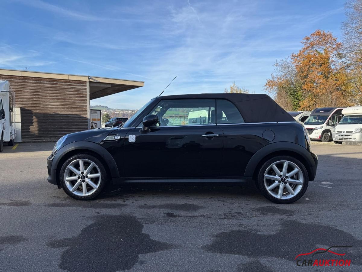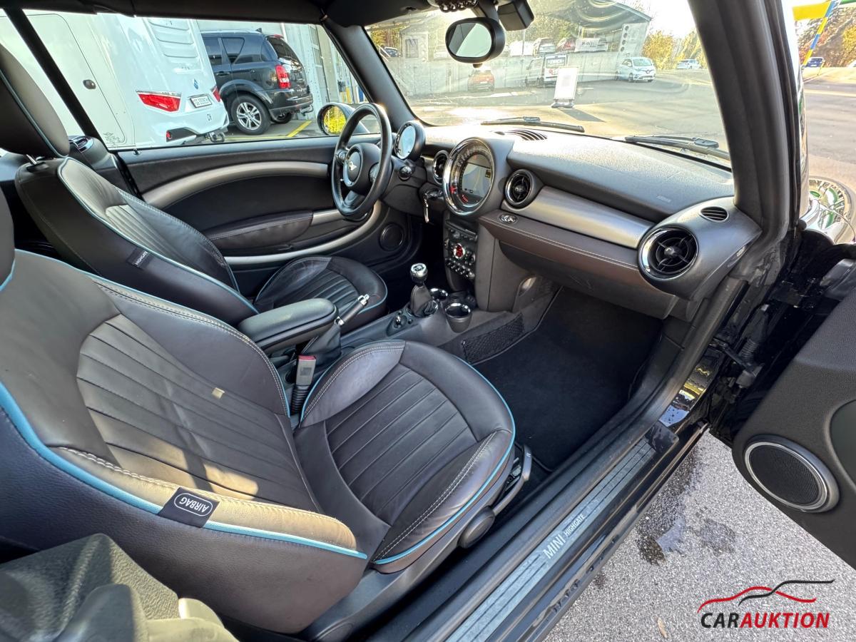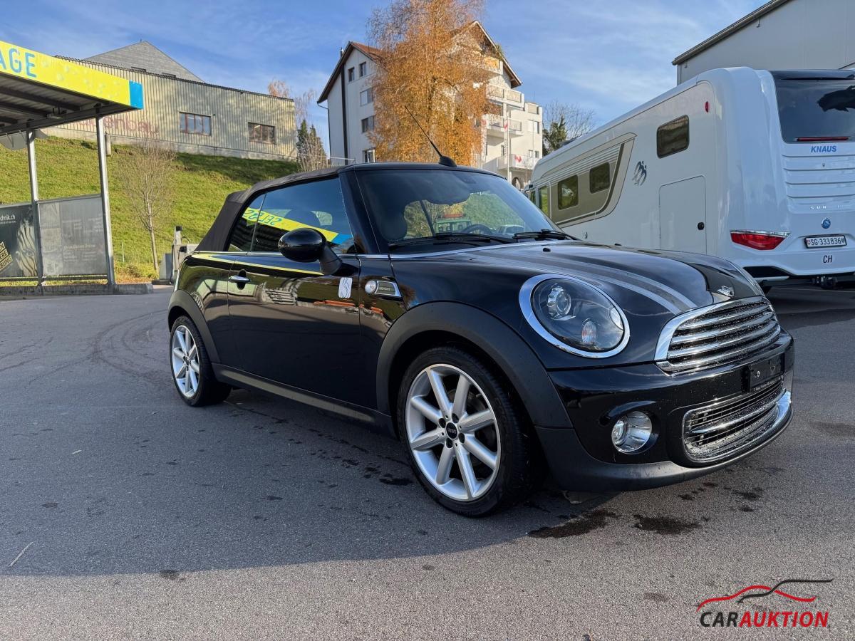 Bremsassistent (BAS), ISOFIX Kindersitzvorrichtung, MP3 / WAV-fähiges CD-Laufwerk, Antiblockiersystem (ABS), Wartungsintervall-Anzeige, Katalysator geregelt, Bremsenergie-Rückgewinnung, Lackierung: Uni-Lackierung, Polster: Stoff-Ausstattung, Verdeck schwarz, Airbag Beifahrer deaktivierbar, Sitze: Rücksitzlehne geteilt abklappbar, Lenkrad: Servolenkung, Airbag: Airbag Fahrer und Beifahrer, Vollautomatisches Verdeck, Türgriffe innen verchromt, Auto Start-/Stop-Anlage, Wegfahrsperre elektronisch, Seitenairbags, Zentralverriegelung mit Fernbedienung, Radio MINI CD, Einstiegsschienen, Fahrersitz höhenverstellbar, 2. Schlüssel mit Funkfernbedienung, Veloursfussmatten vorne und hinten, Cornering Brake Control (CBC), Aussenspiegel in Wagenfarbe, Leichtmetallräder 7-Hole, 15J, Getriebe: 6-Gang-Getriebe, Make up-Spiegel rechts, Drittes Bremslicht, Ablagefach, Easy-Entry, Heckscheibenheizung, Dynamische Stabilitätskontrolle (DSC), Lichtwarnsummer, Überrollschutzsystem, Start-/Stop-Knopf, Licht: Nebelschlussleuchte, Cupholder, Innenspiegel abblendbar, Reifenreparatur-Set mit Kompressor, Höhenverstellbare Gurten vorne, Bremsbelag-Verschleissanzeige, Abschliessbare Radschrauben, Crash-Sensor, Verbandskasten, Leseleuchten vorne, Stabilisatoren vorne und hinten, Tageskilometerzähler, Türgriffe aussen verchromt, Aux-In Anschluss, Interieurfarbe Carbon Black, Park Distance Control (PDC), Aktivkohlefilter, Kopfstützen hinten, Licht: Abblendlichtausschaltverzögerung ‘Follow me home’, Gurtstraffer vorne, Sonnenschutzverglasung, Drehzahlmesser, Elektrische Fensterheber vorne + hinten, 3-Punkt-Sicherheitsgurte auf allen Plätzen, Make up-Spiegel links, Lenkrad höhenverstellbar, Reifendruck-Kontrollanzeige