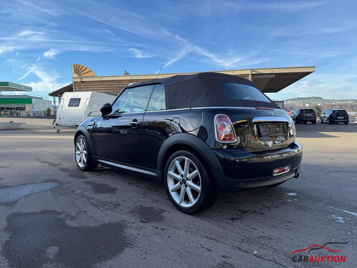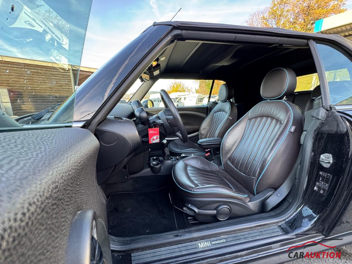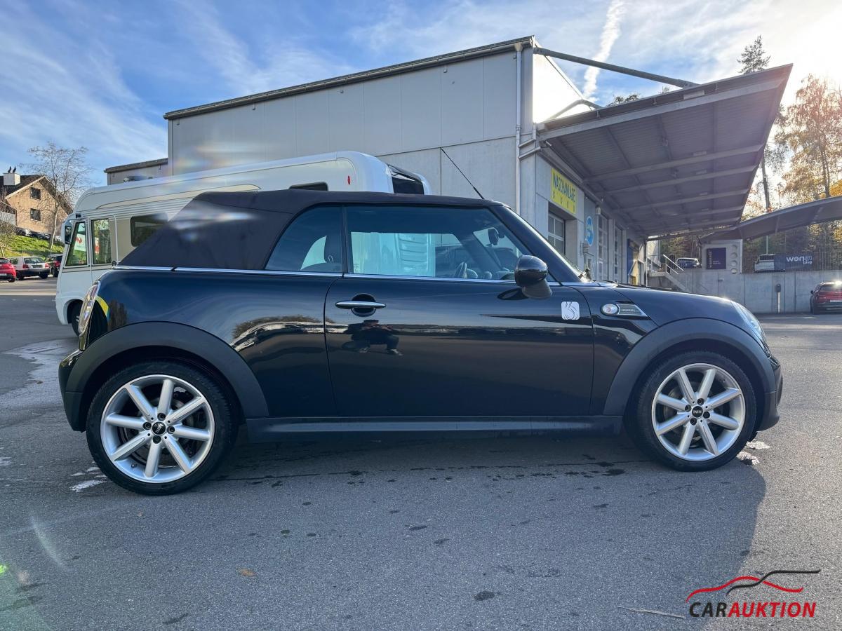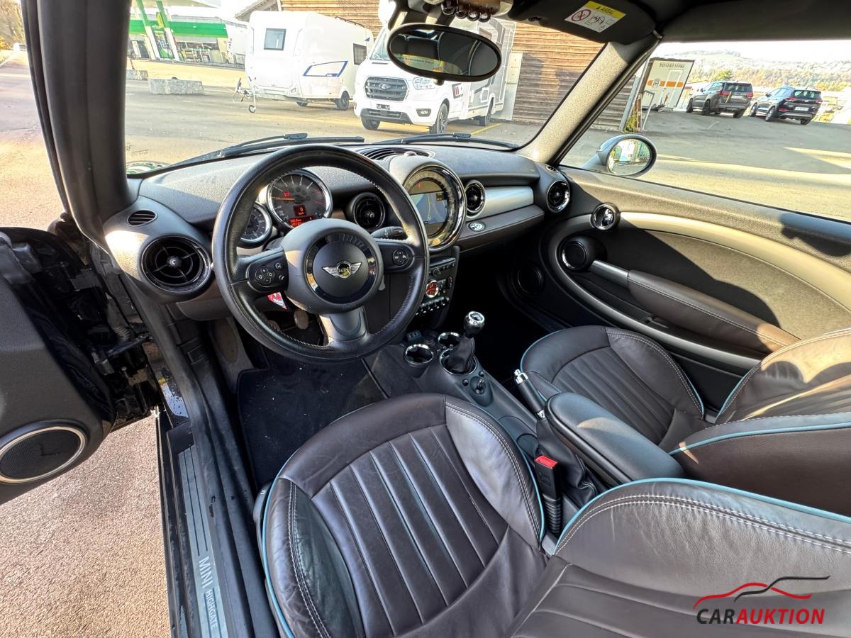 Bremsassistent (BAS), ISOFIX Kindersitzvorrichtung, MP3 / WAV-fähiges CD-Laufwerk, Antiblockiersystem (ABS), Wartungsintervall-Anzeige, Katalysator geregelt, Bremsenergie-Rückgewinnung, Lackierung: Uni-Lackierung, Polster: Stoff-Ausstattung, Verdeck schwarz, Airbag Beifahrer deaktivierbar, Sitze: Rücksitzlehne geteilt abklappbar, Lenkrad: Servolenkung, Airbag: Airbag Fahrer und Beifahrer, Vollautomatisches Verdeck, Türgriffe innen verchromt, Auto Start-/Stop-Anlage, Wegfahrsperre elektronisch, Seitenairbags, Zentralverriegelung mit Fernbedienung, Radio MINI CD, Einstiegsschienen, Fahrersitz höhenverstellbar, 2. Schlüssel mit Funkfernbedienung, Veloursfussmatten vorne und hinten, Cornering Brake Control (CBC), Aussenspiegel in Wagenfarbe, Leichtmetallräder 7-Hole, 15J, Getriebe: 6-Gang-Getriebe, Make up-Spiegel rechts, Drittes Bremslicht, Ablagefach, Easy-Entry, Heckscheibenheizung, Dynamische Stabilitätskontrolle (DSC), Lichtwarnsummer, Überrollschutzsystem, Start-/Stop-Knopf, Licht: Nebelschlussleuchte, Cupholder, Innenspiegel abblendbar, Reifenreparatur-Set mit Kompressor, Höhenverstellbare Gurten vorne, Bremsbelag-Verschleissanzeige, Abschliessbare Radschrauben, Crash-Sensor, Verbandskasten, Leseleuchten vorne, Stabilisatoren vorne und hinten, Tageskilometerzähler, Türgriffe aussen verchromt, Aux-In Anschluss, Interieurfarbe Carbon Black, Park Distance Control (PDC), Aktivkohlefilter, Kopfstützen hinten, Licht: Abblendlichtausschaltverzögerung ‘Follow me home’, Gurtstraffer vorne, Sonnenschutzverglasung, Drehzahlmesser, Elektrische Fensterheber vorne + hinten, 3-Punkt-Sicherheitsgurte auf allen Plätzen, Make up-Spiegel links, Lenkrad höhenverstellbar, Reifendruck-Kontrollanzeige
