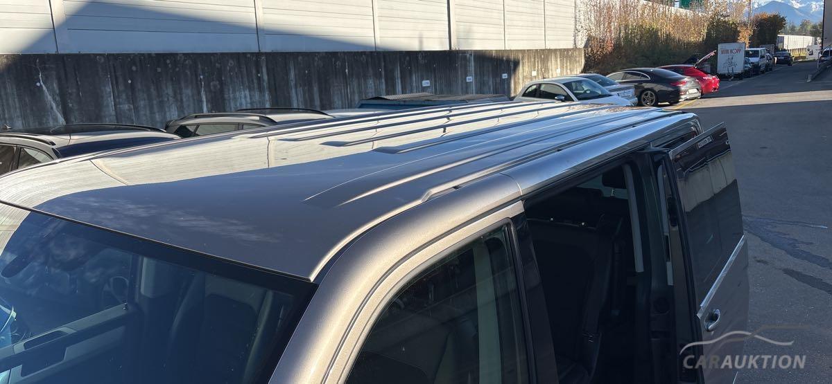 Pack Licht und Sicht, Pack Chrom inkl. Nebelscheinwerfer, Zentralverriegelung mit Fernbedienung, Elektrische Fensterheber vorne, Aussenspiegel elektrisch verstellbar und beheizbar, Stop + Start System, Geschwindigkeitsregelanlage, Heizbare Scheibenwaschdüsen, Schiebetüren elektrisch links + rechts, Servoschliessung Heckklappe, Heckklappe, Dunkel eingefärbte Fenster im Fahrgastraum, Schiebefenster im Fahrgastraum vorne rechts, Servotronic, Dieselpartikelfilter, Airbag Fahrer und Beifahrerseite, Seiten- und Kopfairbag vorn, Diebstahlwarnanlage m. Innenraumüberwachung, Park-Distanz-Sensor vorne + hinten, Reifendruckkontrollanzeige, Nebelscheinwerfer vorne und Abbiegelicht, ABS + EDS + ASR, ESP Elektronisches Stabilitätsprogramm, Berganfahrassistent, Klimaanlage CLIMATRONIC vorne + hinten, Lenkrad verstellbar, Lederbezug für Lenkrand und Schalthebel, Multifunktions-Lederlenkrad + Bedienung für Radio u. Telefon, Sitzbezüge in Leder-Alcantara, Sitzheizung Fahrer- und Beifahrerseite, Einzelsitze vorne verstellbar, 2 Einzeldrehsitze 1. Sitzreihe im Fahrgastraum, Kindersitz- Vorbereitung ISOFIX, 12V Steckdose, Sonnenrollo für Seitenfenster, Multifunktionsanzeige Premium mit TFT-Farbdisplay, Teppich-Fussmatten im Fahrerhaus, Teppichboden vorn und hinten, Gepäckraumabdeckung, Multifunktionsmitteltisch, Fussraumbeleuchtung vorne + hinten, Radio Composition Colour, DAB+ (Digitaler Radioempfang), Keine Gewähr auf die Angaben der Serienausstattungen