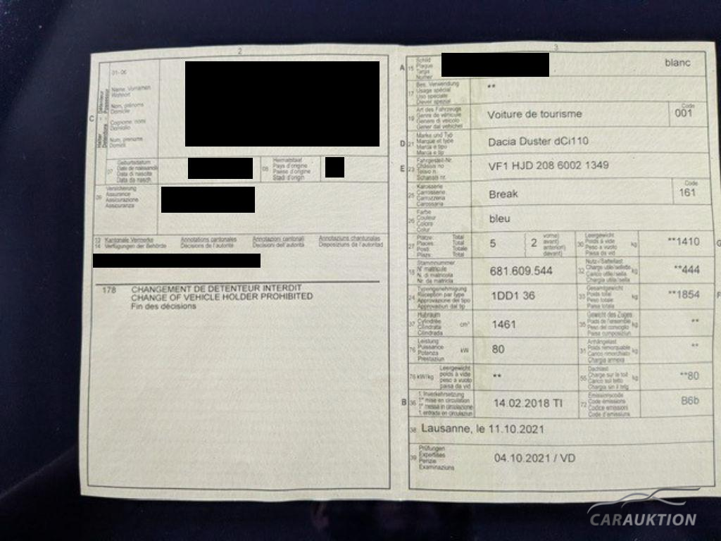 Lederlenkrad, Automatische Türverriegelung geschwindigkeitsabhängig, Türverkleidung mit Stoffeinsätzen, Pollenfilter (Staubfilter), Räder: Reifenreparatur-Kit, Aussenspiegel rechts und links beheizbar und elektrisch verstellbar, Assist: Antriebsschlupfregelung (ASR), Stopp-/Start-System, Lackierung: Bleu Navy, Airbag: Airbag Fahrer und Beifahrer, Licht: Drittes Bremslicht, 3 Kopfstützen hinten, Heckscheibenheizung, ISOFIX-Kindersitzbefestigung auf den hinteren Aussenplätzen, Einparkhilfe hinten, Eco-Modus, Seitenairbag für Fahrer und Beifahrer, Licht: Tagfahrlicht, Höhenverstellbare Gurten vorne, Innenraumbeleuchtung, Stoff-/Kunstleder-Ausstattung, Wegfahrsperre elektronisch, Sonnenblende links, Licht: Automatisches Einschalten der Abblendlichter, Dachreling mattchrom, Bordcomputer, Fahrersitz höhenverstellbar, Zentralverriegelung mit Fernbedienung, Lenkrad längs- und höhenverstellbar, Rückfahrkamera, Klimaanlage, Getönte Scheiben, Antiblockiersystem (ABS), Elektronisches Stabilitäts-Programm (ESP), Airbag: Airbag Beifahrer deaktivierbar, Elektrische Fensterheber vorne + hinten, Média-Nav DAB+ (Navigation+Radio+ Telefonie) und Lenkradbedienung, Sonnenblende rechts, Interieurdesign, Abgedunkelte Seiten- und Heckscheibe, Servolenkung elektrisch, Licht: Kofferraumbeleuchtung, Media: Radiovorbereitung und Entstörung, Nebelschlussleuchte, Nebelscheinwerfer, Stossfänger vorne und hinten schwarz, Türgriffe aussen in Wagenfarbe, Geschwindigkeitsbegrenzer, Partikelfilter und Oxydationskatalysator, Sequentielles 6-Gang-Getriebe mit Automatikfunktion, Tempomat, Radio MP3 DAB+, USB, AUX, Bluetooth, Lenkradbedienung, Sitze: Rücksitzlehne geteilt abklappbar, Assist: Toterwinkel-Assistent, Hill-Start Assist (HSA), Assist: Notbremsassistent, 3-Punkt-Sicherheitsgurte auf allen Plätzen