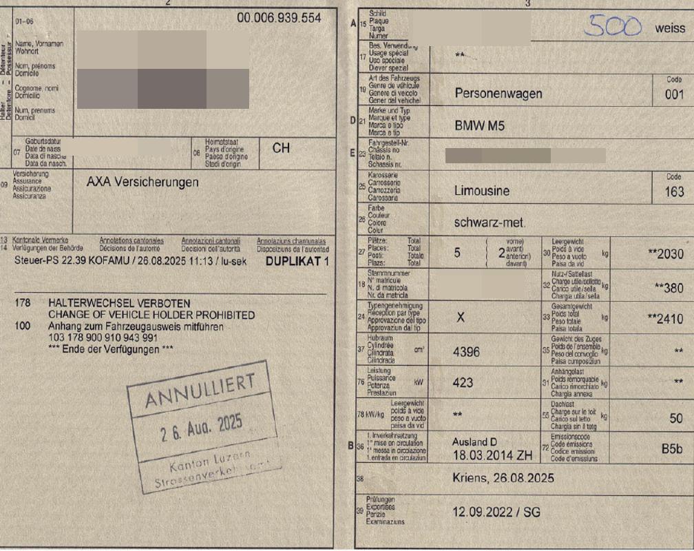 Auspuffanlage, Auspuffkollektor, Auspufftopf, Aussenspiegel links, Batterie/Akku, Diverse Gebrauchspuren, Heckblech, Heckdeckel, Interieur, Motorlampe leuchtet, Querträger, Rad hinten links, Rad hinten rechts, Rad vorne links, Rad vorne rechts, Rücklicht rechts, Seitenwand rechts, Stossstange hinten, Stosstange vorne