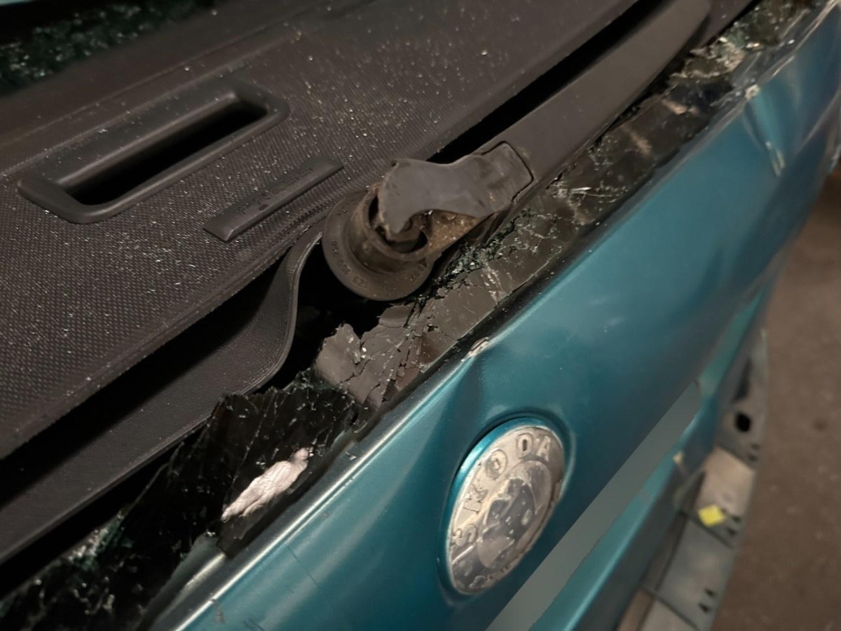 Diverse Anbauteile, Diverse Gebrauchspuren, Diverse Gebrauchspuren, Heck, Heckblech, Heckdeckel, Heckscheibe, Interieur verschmutzt, Kofferraumboden, Kofferraumboden, Radhaus hinten links, Radhaus hinten rechts, Rücklicht links, Rücklicht rechts, Seitenwand links, Seitenwand rechts, Stossstange hinten