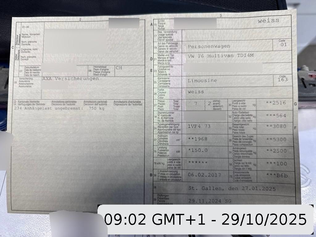 | Fahrzeugausweis | Vorhanden |