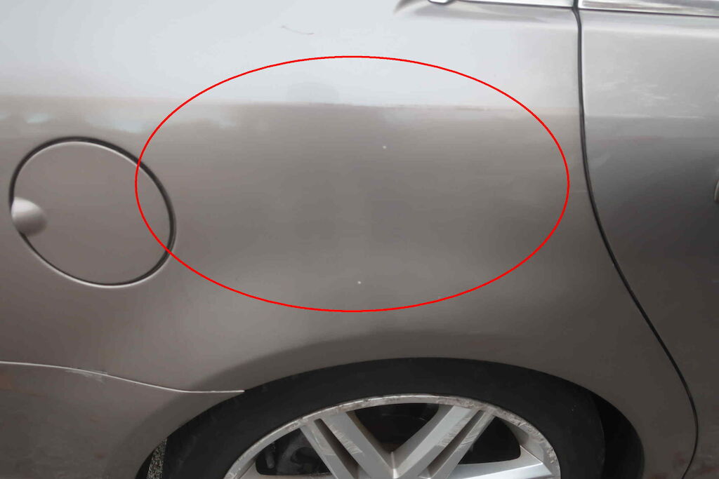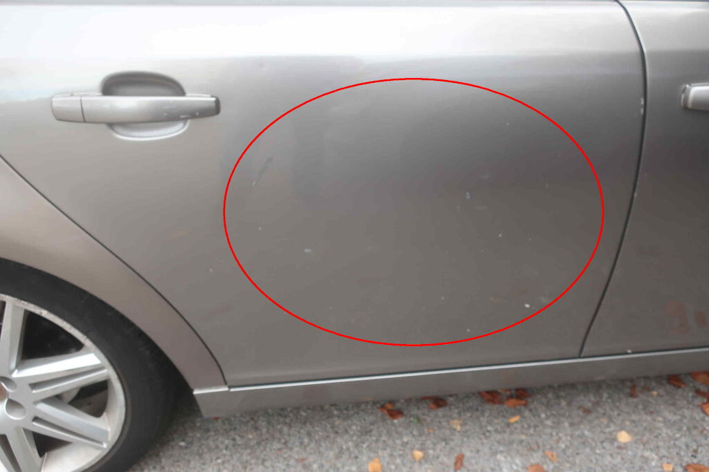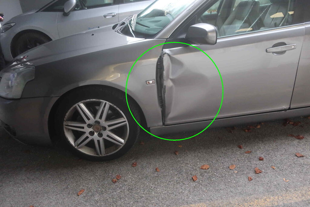 Porte avant gauche froissée.