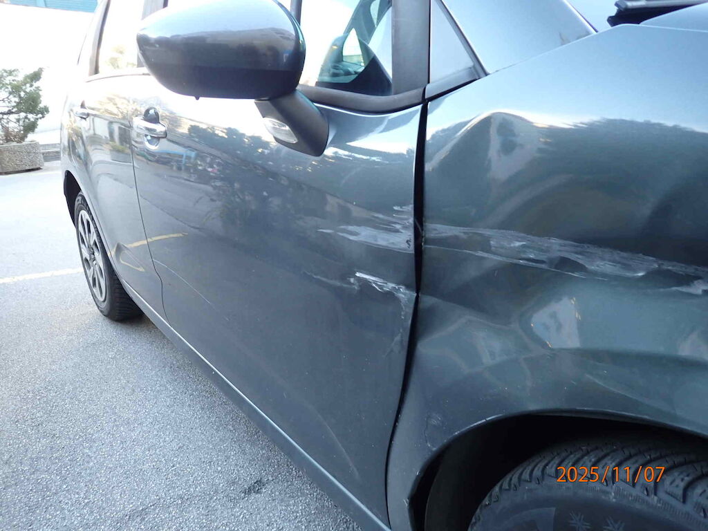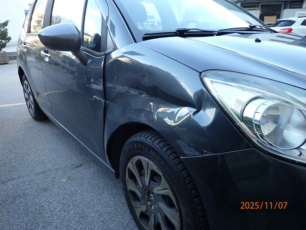Aile avant droite enfoncée. Porte avant droite pliée. enjoiliveur frotté