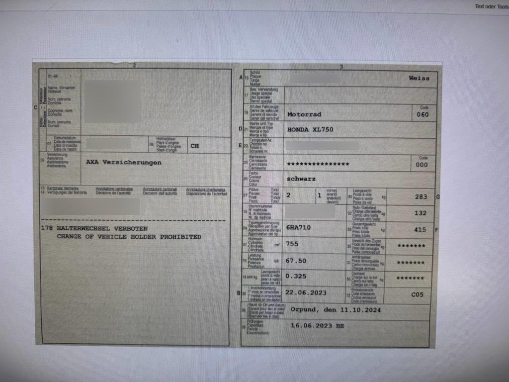 | Fahrzeugausweis | Vorhanden |