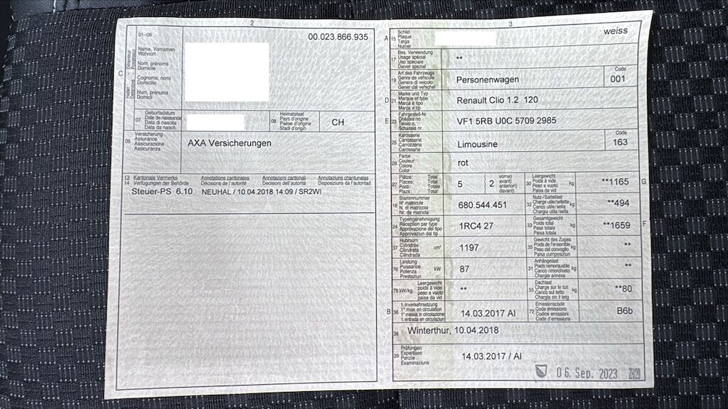 | Costi riparazione | 0.00 CHF | |