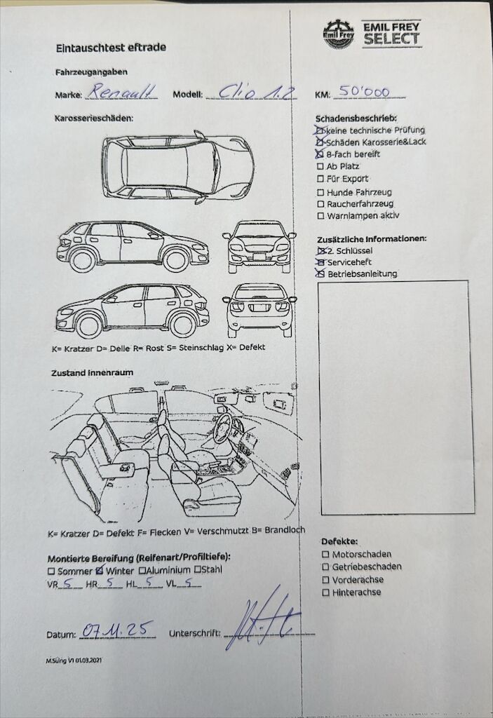 Keine technische Prüfung (Werkstatttest) vorgenommen