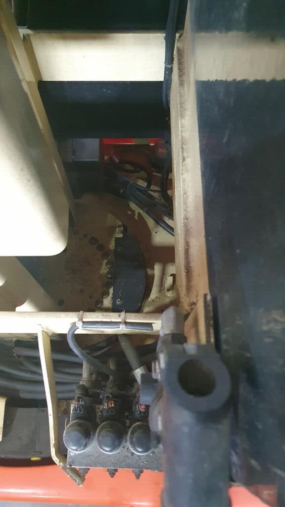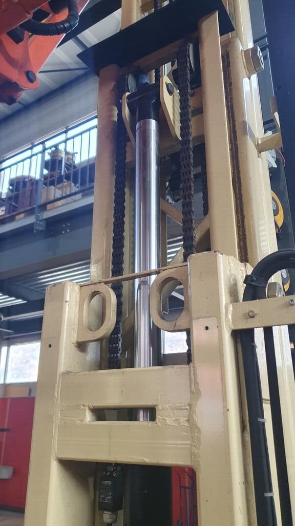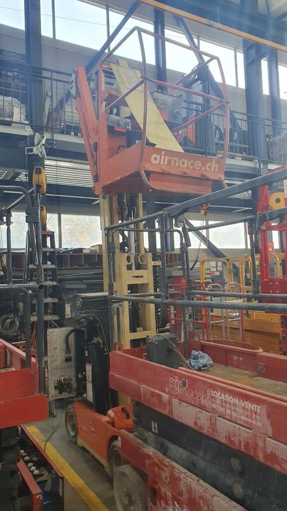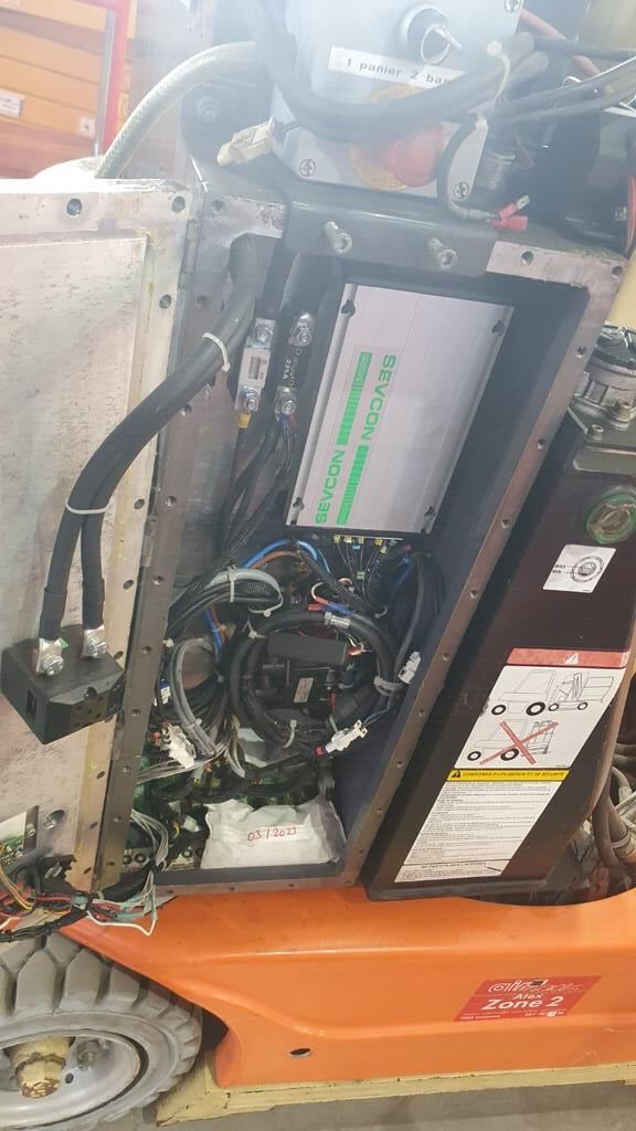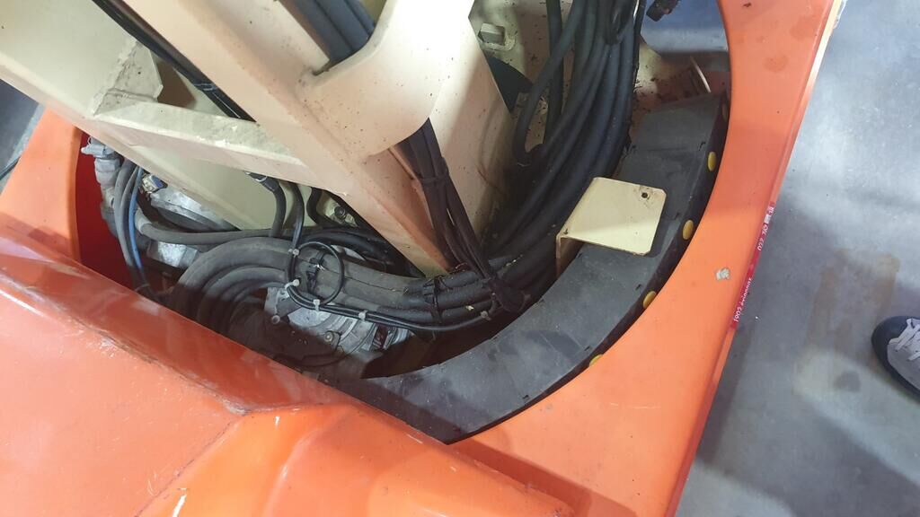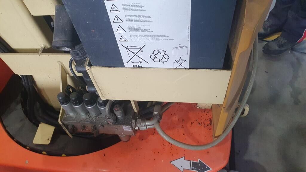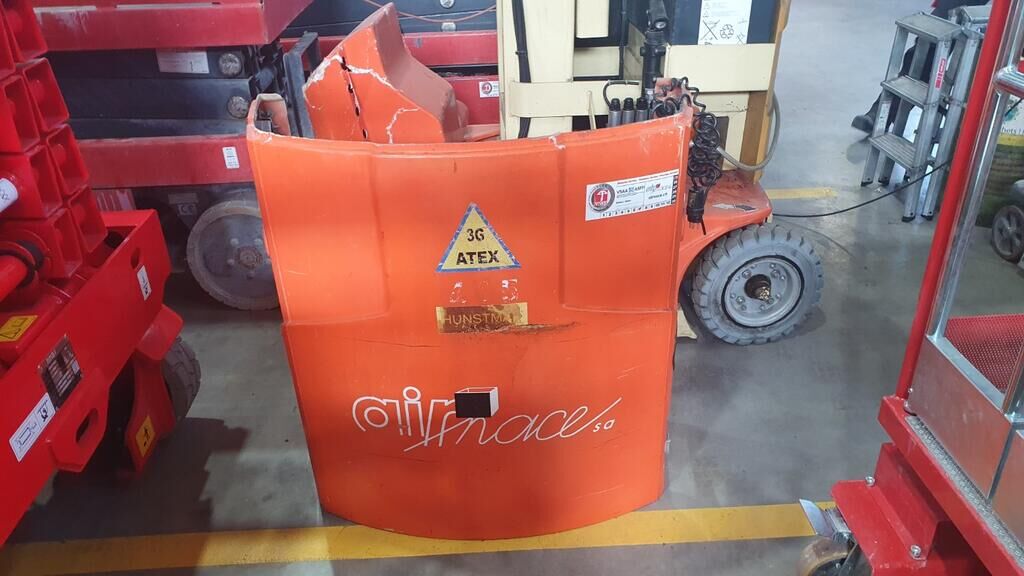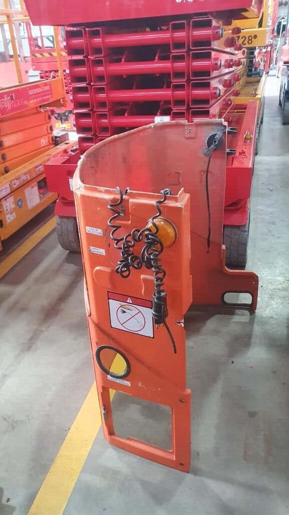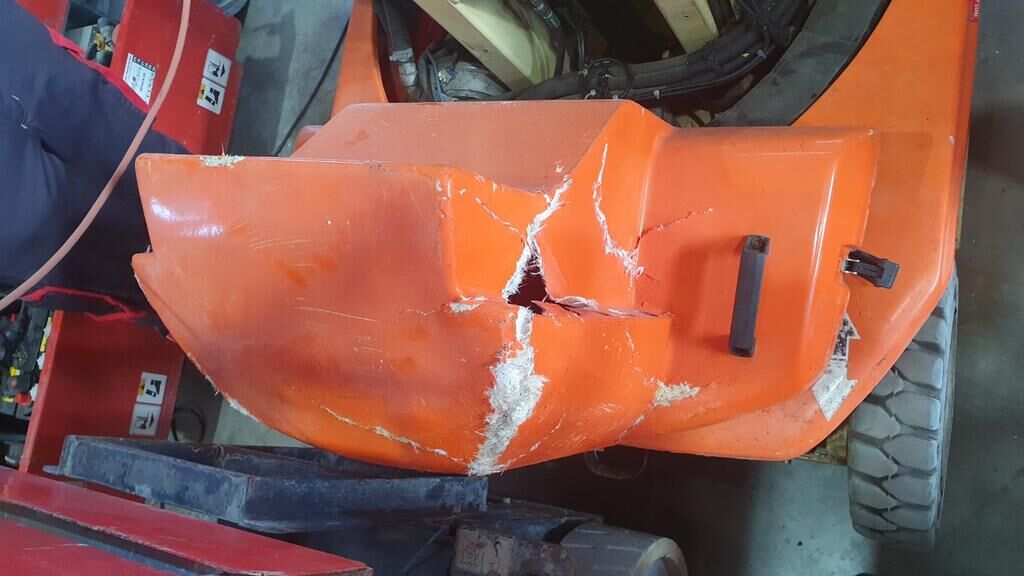 Capot de protection cassé, vérin de levage faussé, batterie endommagée