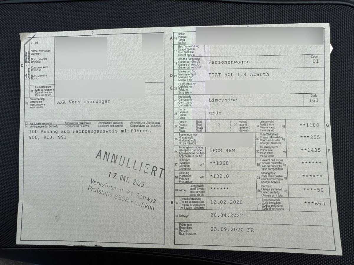Das Fahrzeug ist tiefergelegt (eingetragen im Fahrzeugausweis) Inkl. 4 original Sommerräder Die (vom Fahrzeugexperten) ermittelten Reparaturkosten beziehen sich auf das versicherte Ereignis. Allfällige zusätzliche, nicht versicherte Schäden/Vorschäden, sind in den Reparaturkosten nicht enthalten. Die deklarierten Ausstattungsmerkmale können von der effektiven Ausstattung abweichen. Achtung Bei einem Hochvoltsystem – Spannungsfreiheit prüfen. Sicherheitshinweise und Betriebsanleitungen des Herstellers konsultieren und befolgen. |