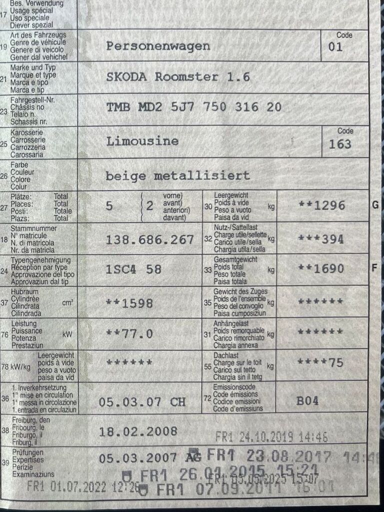 | Das Fahrzeug wird vom Besitzer noch benutzt. Div. Carrosserie Teile sind leicht beschädigt. Div. Roststellen am Fahrzeug. |