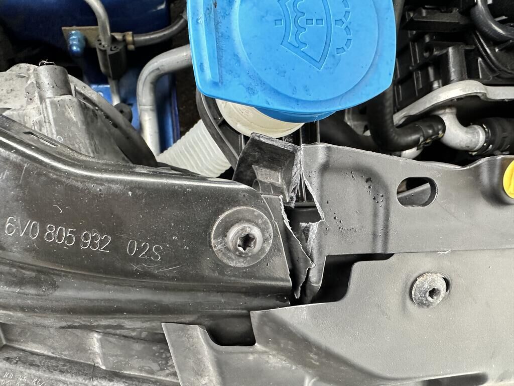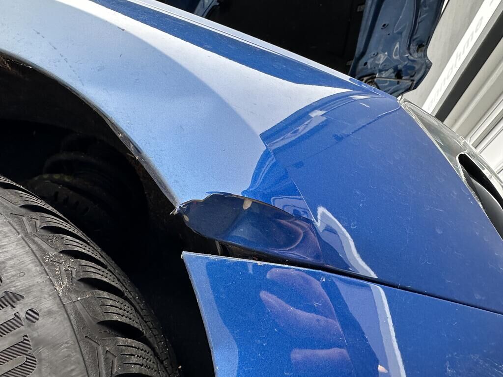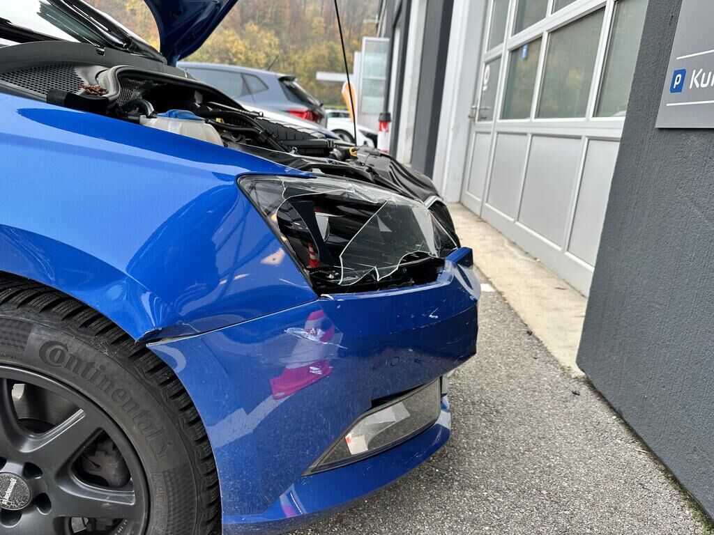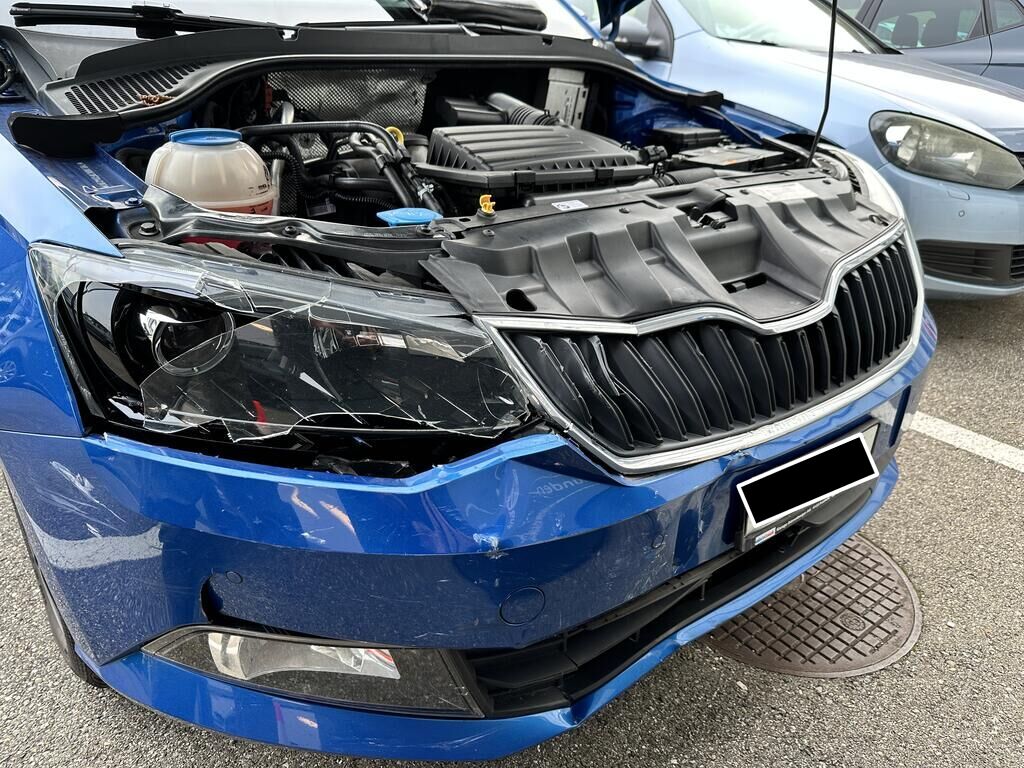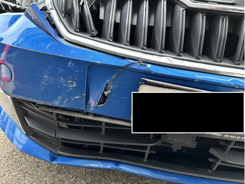 Durch Anprall wurde der Stossfänger vorne, Kotflügel vorne rechts, Scheinwerfer rechts und das Frontblech deformiert.
