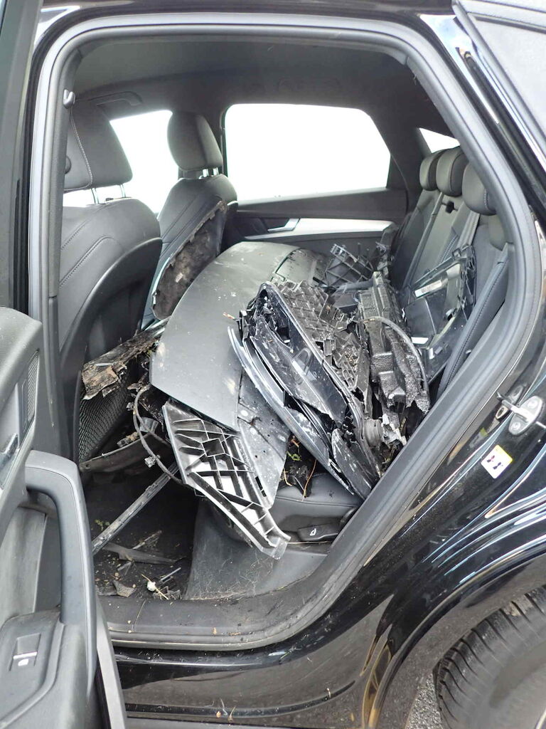 | Bloc frontal AV, radiateurs, longeron g., capot, phares, ailes AV susp. AVG et dessous du véhicule endommagés | |