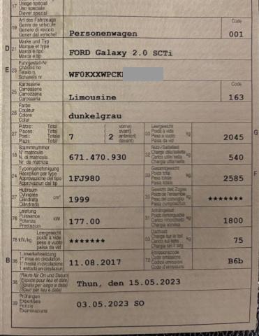 Serienaustattung Airbag Fahrer und Beifahrerseite Sitzheizung vorne Tempomat Nebelscheinwerfer Lederlenkrad Innenspiegel automatisch abblendbar Dachreling Alu ESP/ ASR Aussenspiegel elektrisch verstellbar/ heizbar und anklappbar Beifahrersitz 4-fach verstellbar Windowbags vorne + hinten Servolenkung elektrisch Zwei Zonen-Klimaautomatik Seitenairbags vorne Garantie 3 Jahre/ 100’000 km ABS/ EBD Knieairbag Fahrer Keyless Schliess- und Startsystem Bodenteppiche vorne und hinten Multi-Informationsdisplay/ Bordcomputer Heizbare Frontscheibe Quickclear Reifendruck-Sensoren TPMS Reifen-Reparatur Set Fahrersitz 4-fach verstellbar Leichtmetallfelgen 17″ 5×2-Speichen Start + Stopp Funktion LED Tagfahrlicht Klapptische im Fond/ 2. Sitzreihe Pack Winter Keine Gewähr auf die Angaben der Serienausstattungen Spurhalteassistent mit Spurwechselwarner Verkehrsschild-Erkennungssystem Ford Power Startfunktion Audiosystem 5 Fernlichtassistent/ Licht- und Regensensor Audiosystem 5 mit DAB+ Sonderausstattung |