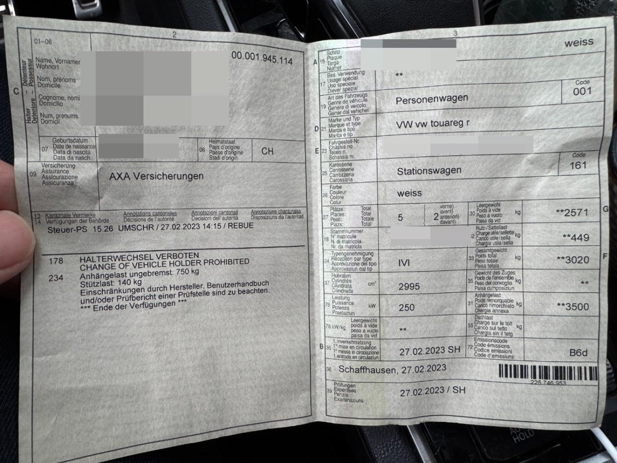 | Fahrzeugausweis | Vorhanden |