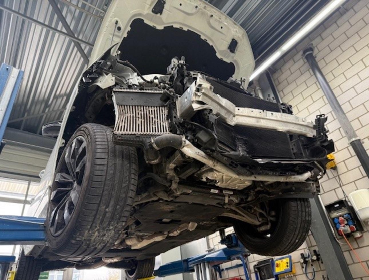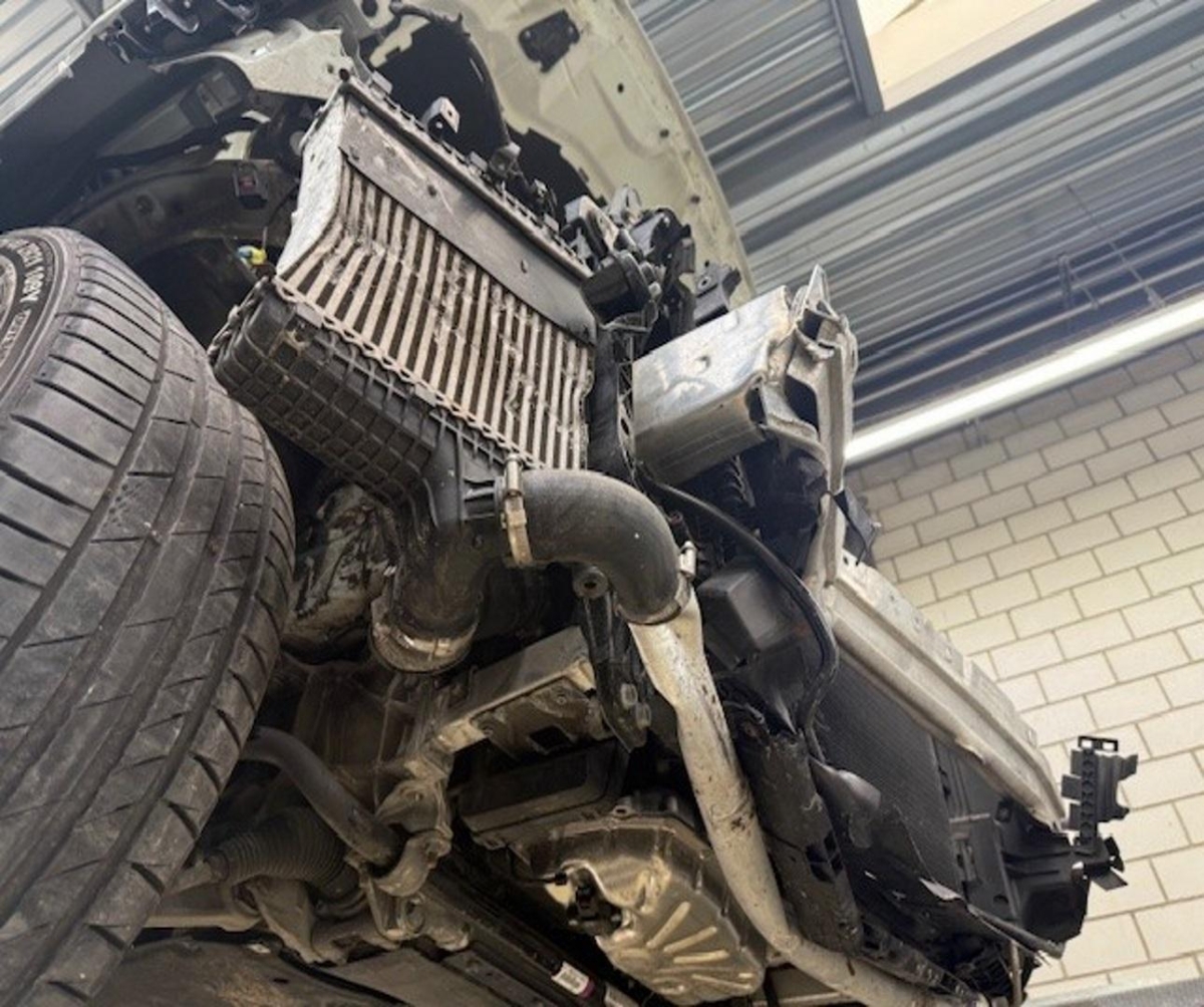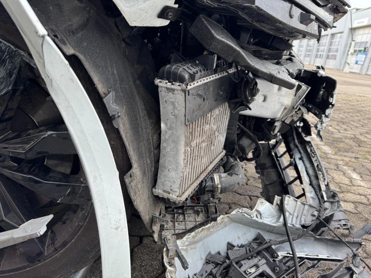 Airbag ausgelöst, Diverse Anbauteile, Diverse Gebrauchspuren, Federbein vorne rechts, Front, Front links, Front rechts, Frontblech, Kotflügel rechts, Kühler, Kühlgitter, Ladeluftkühler, Lenkung, Rad vorne rechts, Radhaus vorne rechts, Scheinwerfer links, Scheinwerfer rechts, Schlossträger