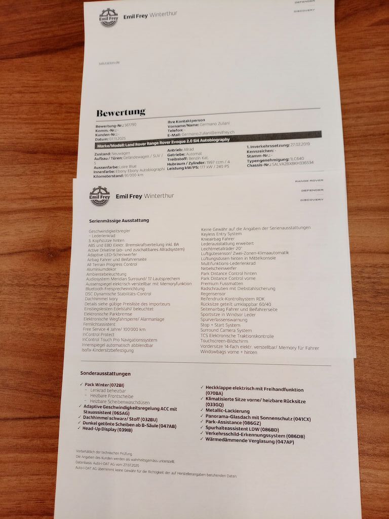 | Tipo | Evoque 2.0 Si4 Autobiography |