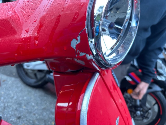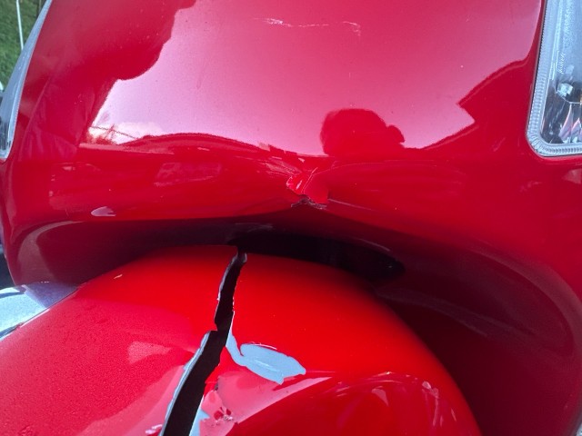 Frontpartie beschädigt, Rad, Kotflügel, Gabel, Frontschild, Lenker, Scheinwerfer, obere Verkleidung und rechter hinterer Unterbau beschädigt.