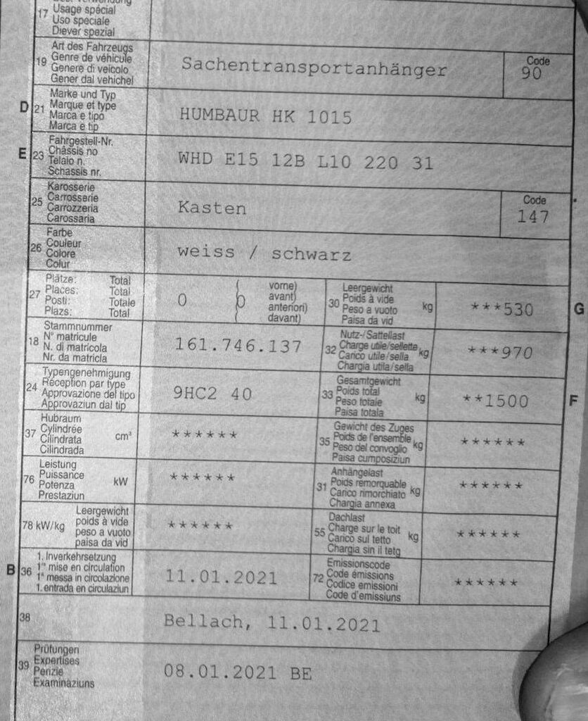 | Tipo veicolo / Costruzione / Porte | Rimorchio / Altrui / 3 |