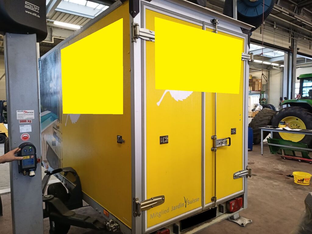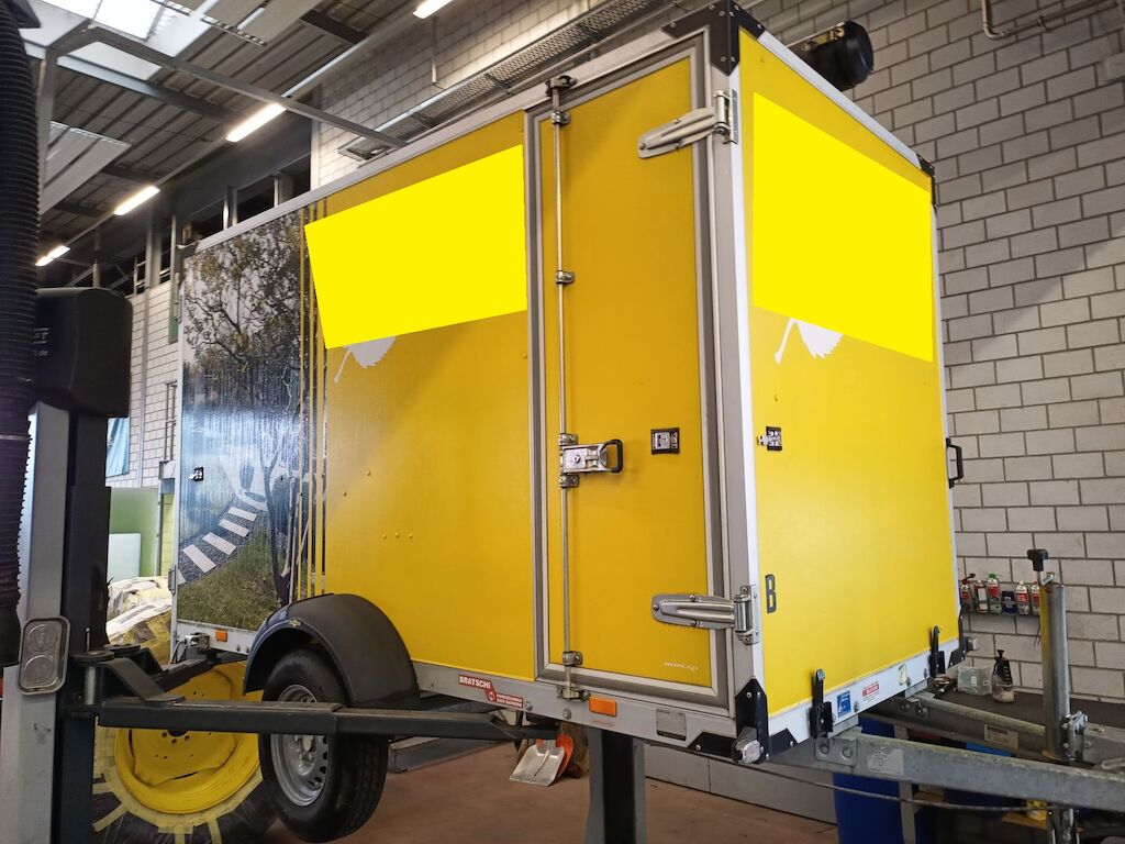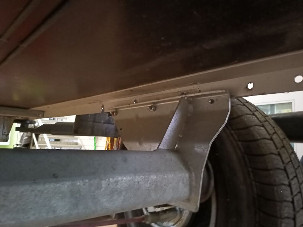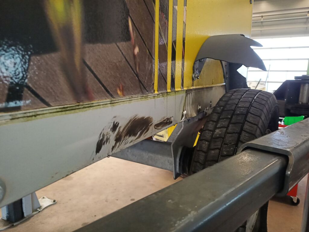 Kollisionsschäden, Aufprall auf der linken Seite des Anhängers mit Schäden an der Achse und der Anhängerstruktur sowie diversen Anbauteilen