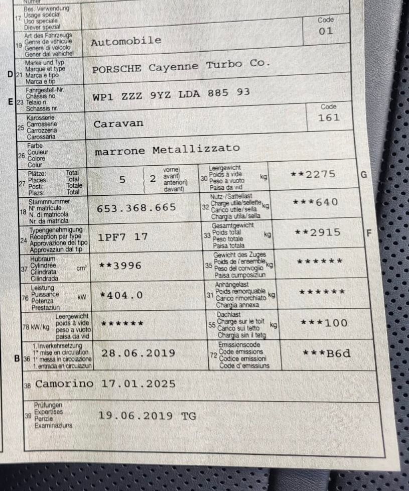 | Numero telaio | WP1ZZZ9YZLDA88593 |
