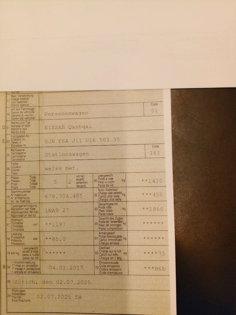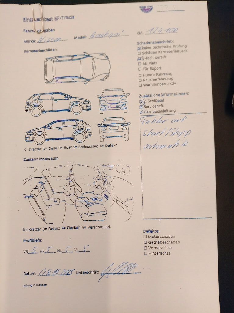Keine technische Prüfung (Werkstatttest) vorgenommen