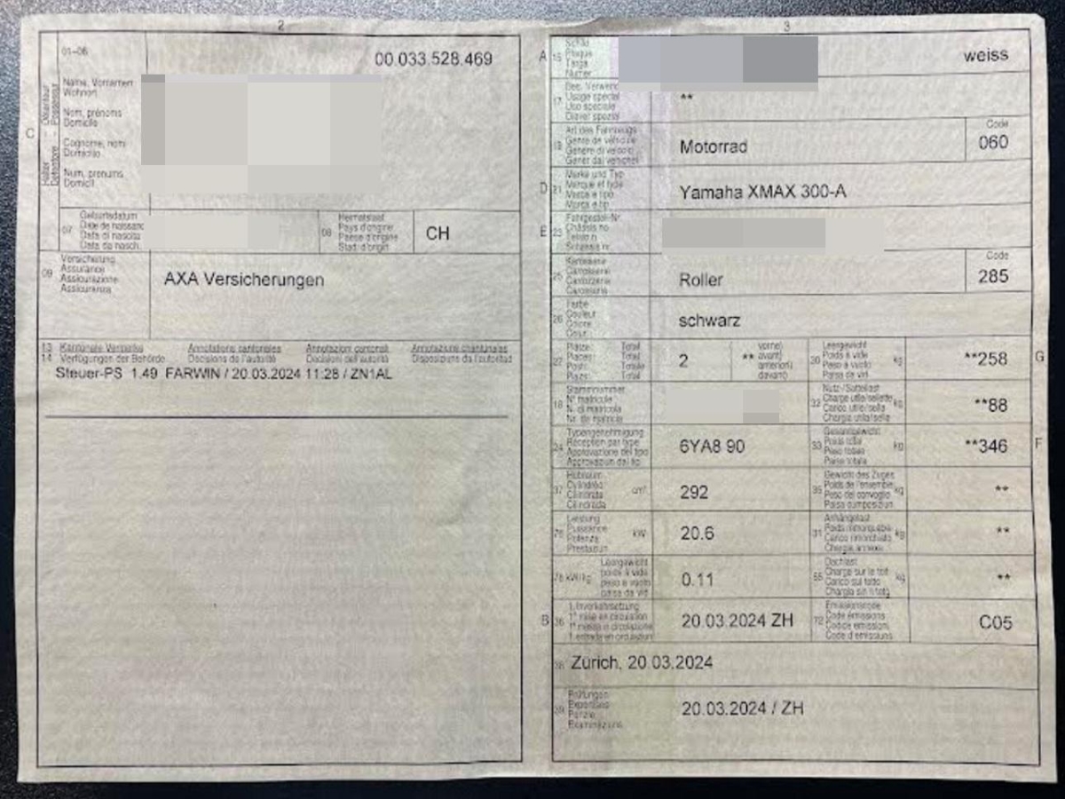 | Fahrzeugausweis | Vorhanden |