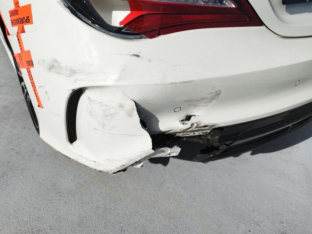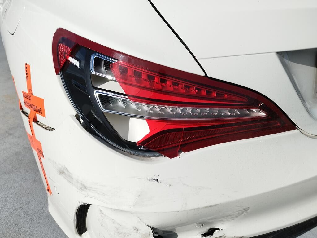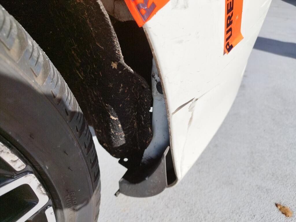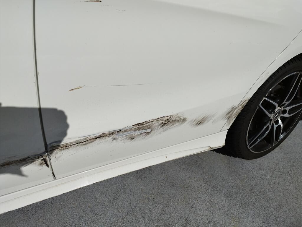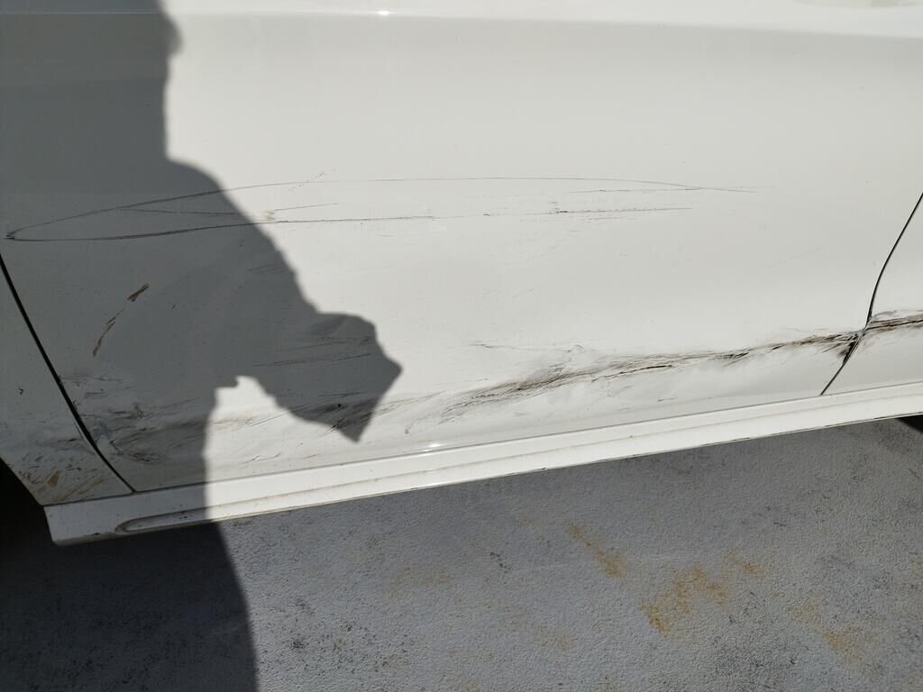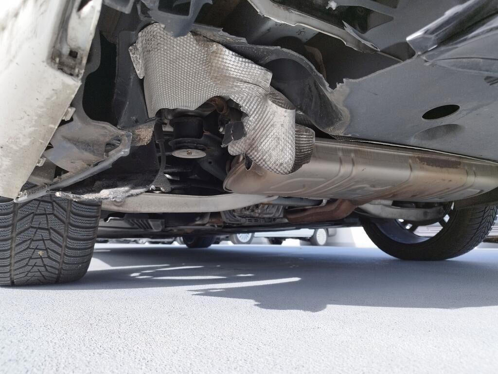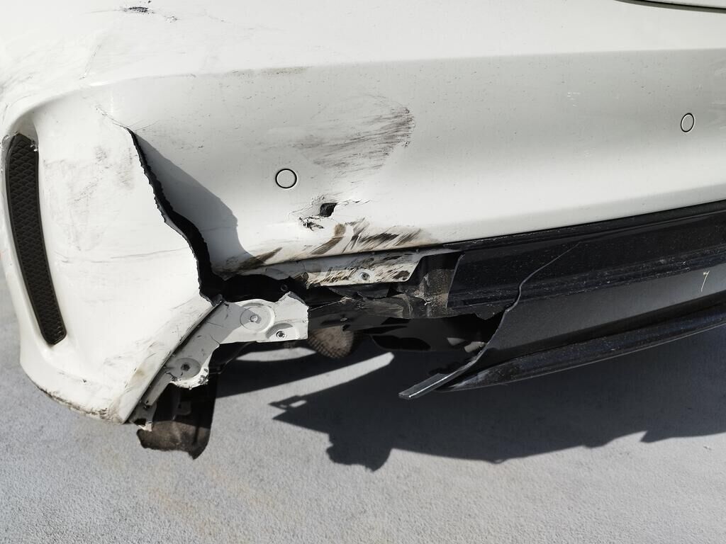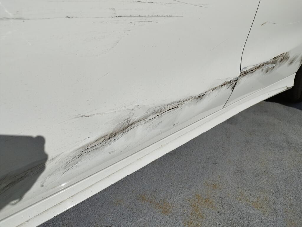 Der Kotflügel vorne links ist deformiert, die Türe vorne links ist deformiert, die Türe hinten links ist deformiert, die Schwellerblende links hat Kratzspuren, die Seitenwand hinten links hat Kratzspuren und eine Delle, die Felge hinten links hat Kratzspuren, die Stossstange hinten links ist gerissen, diverse Anbauteile sind gerissen, der Auspuff hinten links ist abgerissen, die Heckleuchte links ist gerissen.