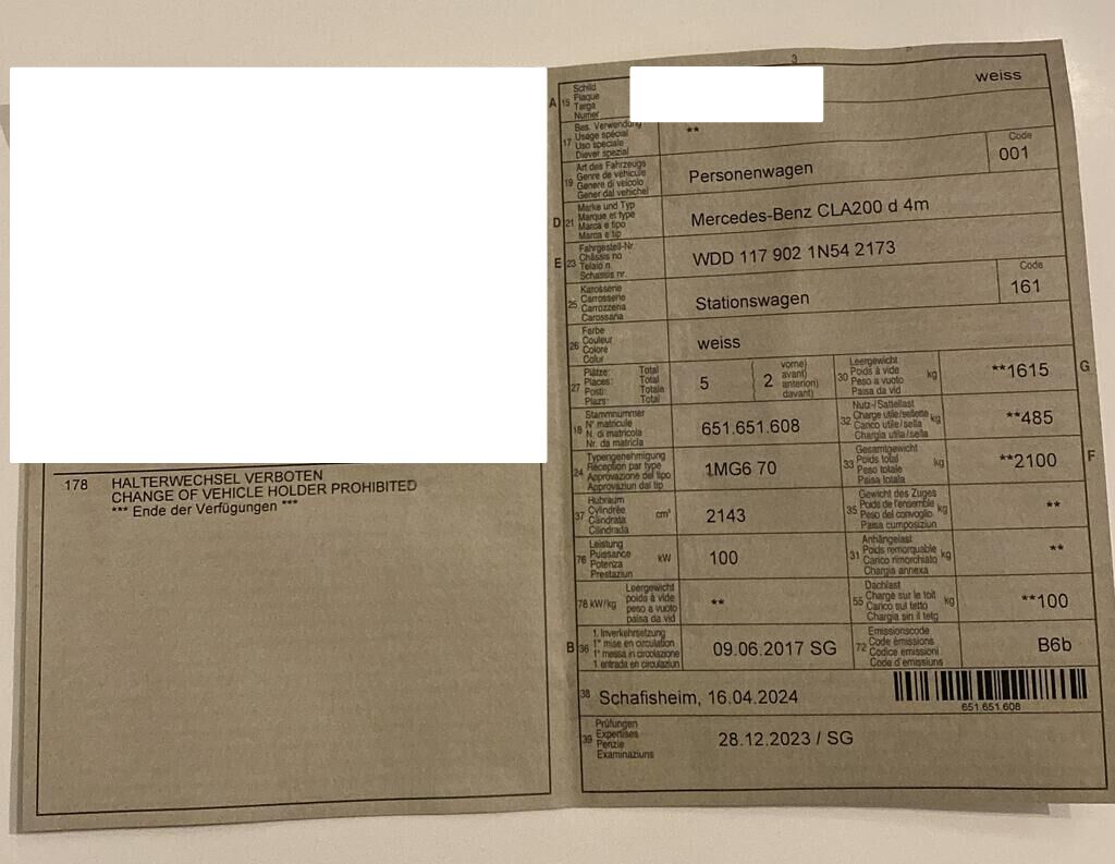 | Pneumatici | Achse 1: L: 6 mm, R: 6 mm, Dimension: 225/40 R18 Winter Achse 2: L: 6 mm, R: 6 mm, Dimension: 225/40 R18 Winter |