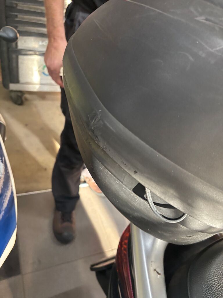 Kollisionsschaden linke und rechte Seite mit Beschädigung von: alle Verschalungen, Top-case, Auspuff Motordeckel, Gabel und Lenker