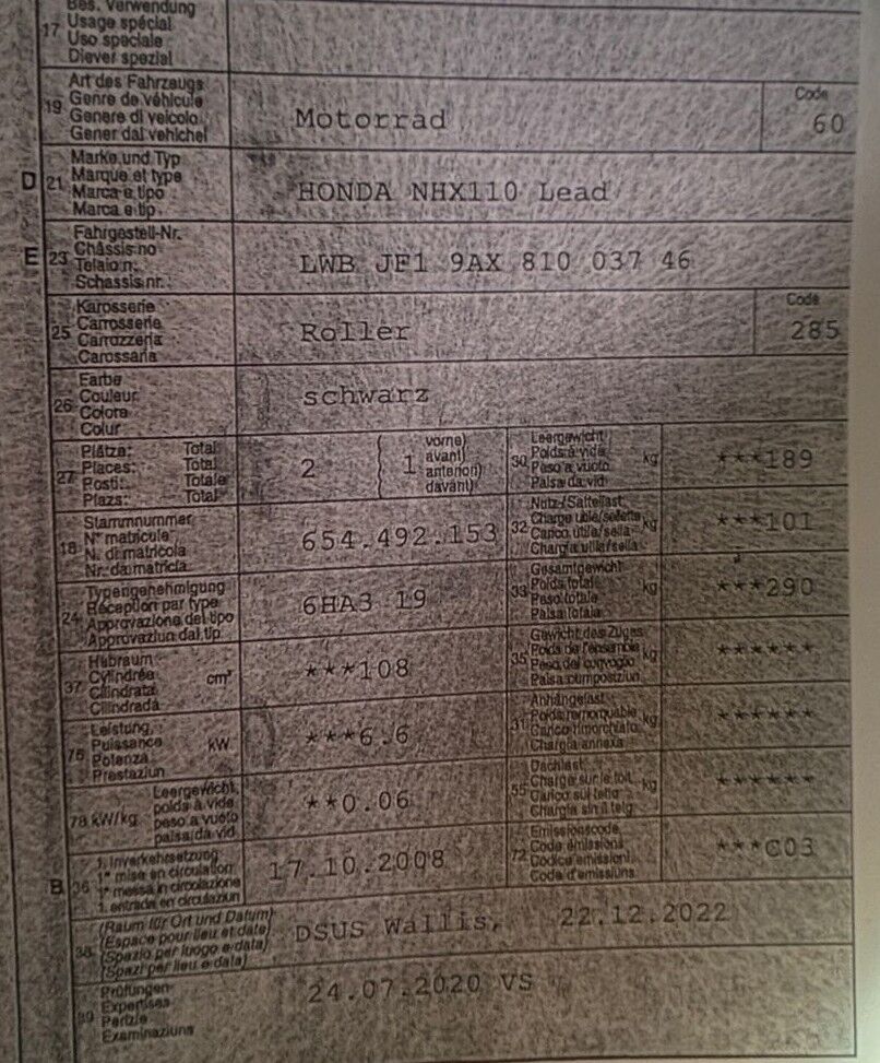 | Das Motorrad wurde in unzerlegtem Zustand besichtigt. Es ist nur ein Schlüssel vorhanden Die Reparaturkosten wurden nicht berechnet. Diese übersteigen den Zeitwert. Der Koffer wird abgenommen und ist nicht im Angebot. |