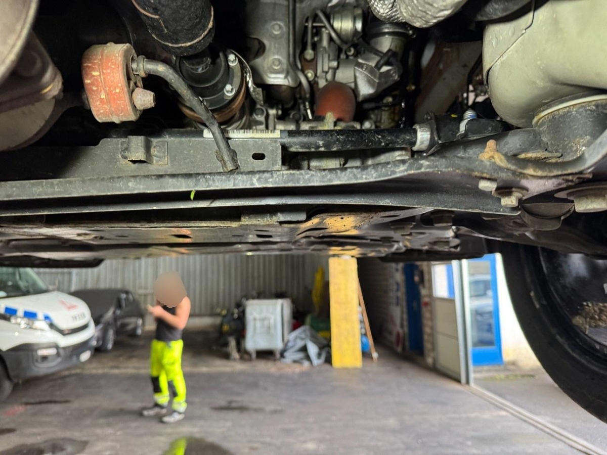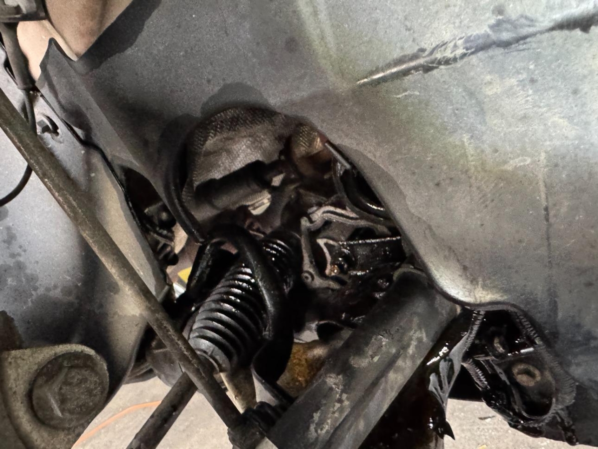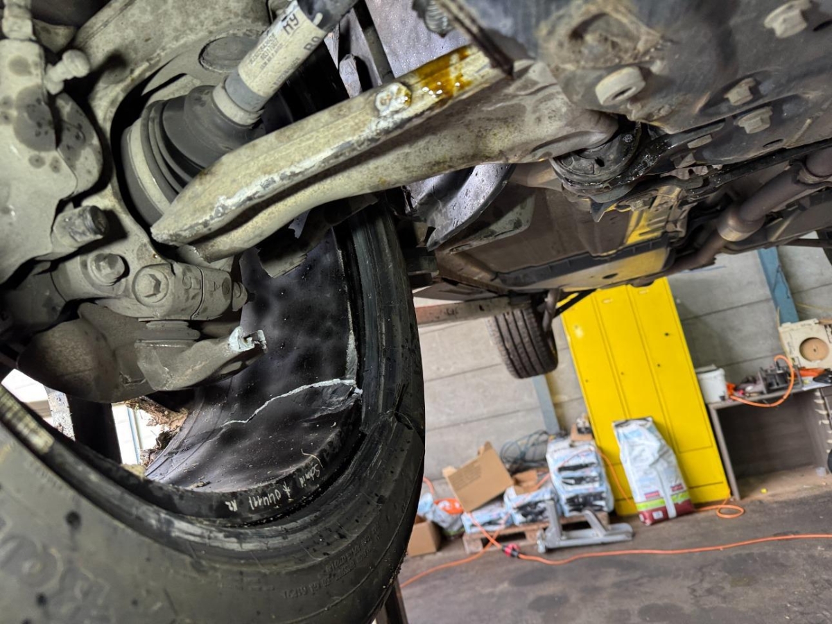 Antrieb, Antriebswelle, Diverse Anbauteile, Diverse Gebrauchspuren, Federbein vorne rechts, Front, Front rechts, Getriebe, Hinterachse, Kotflügel rechts, Lenkung, Motorträger, Rad hinten links, Rad hinten rechts, Rad vorne links, Rad vorne rechts, Radaufhängung vorne rechts, Stosstange vorne, Vorderachse