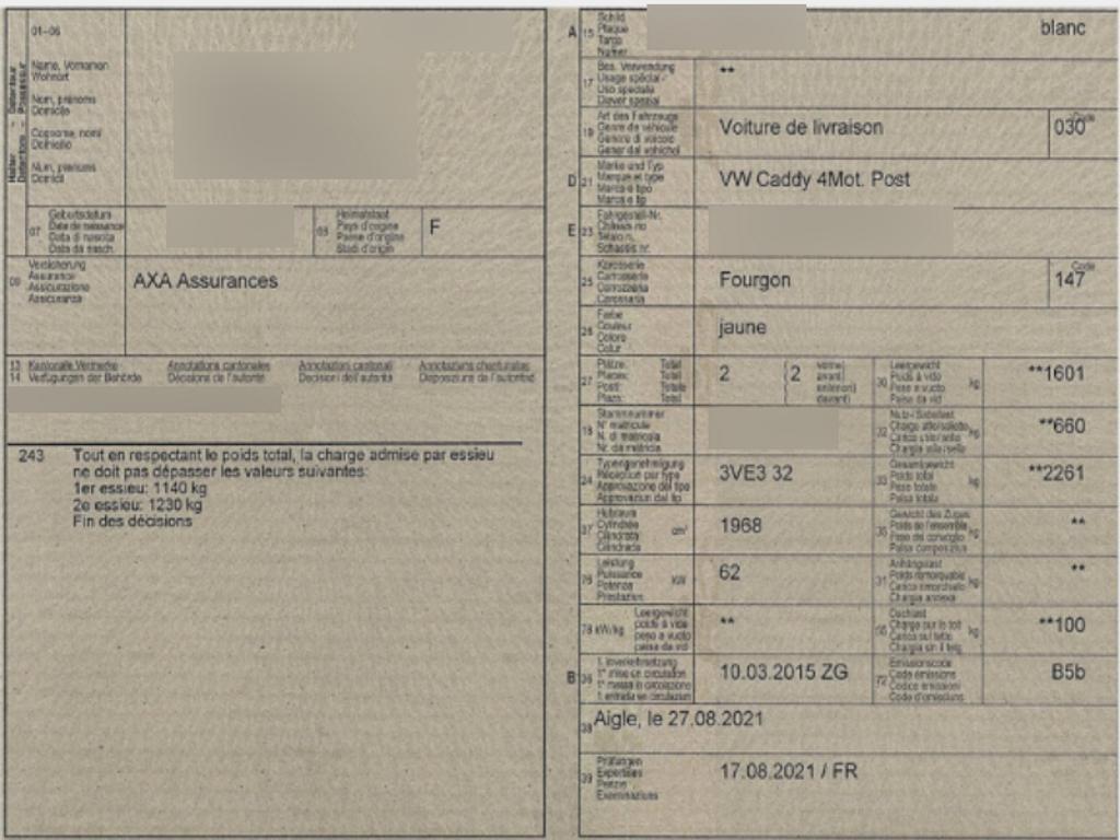 Die (vom Fahrzeugexperten) ermittelten Reparaturkosten beziehen sich auf das versicherte Ereignis. Allfällige zusätzliche, nicht versicherte Schäden/Vorschäden, sind in den Reparaturkosten nicht enthalten. Die deklarierten Ausstattungsmerkmale können von der effektiven Ausstattung abweichen. Achtung Bei einem Hochvoltsystem – Spannungsfreiheit prüfen. Sicherheitshinweise und Betriebsanleitungen des Herstellers konsultieren und befolgen. |